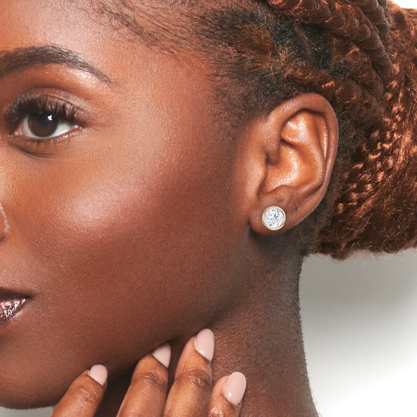 Home / Jewelry / Earrings / Diamond Stud Earrings / White Diamond 10.7mm Classic Bezel Set Stud Earrings - Ishanvi