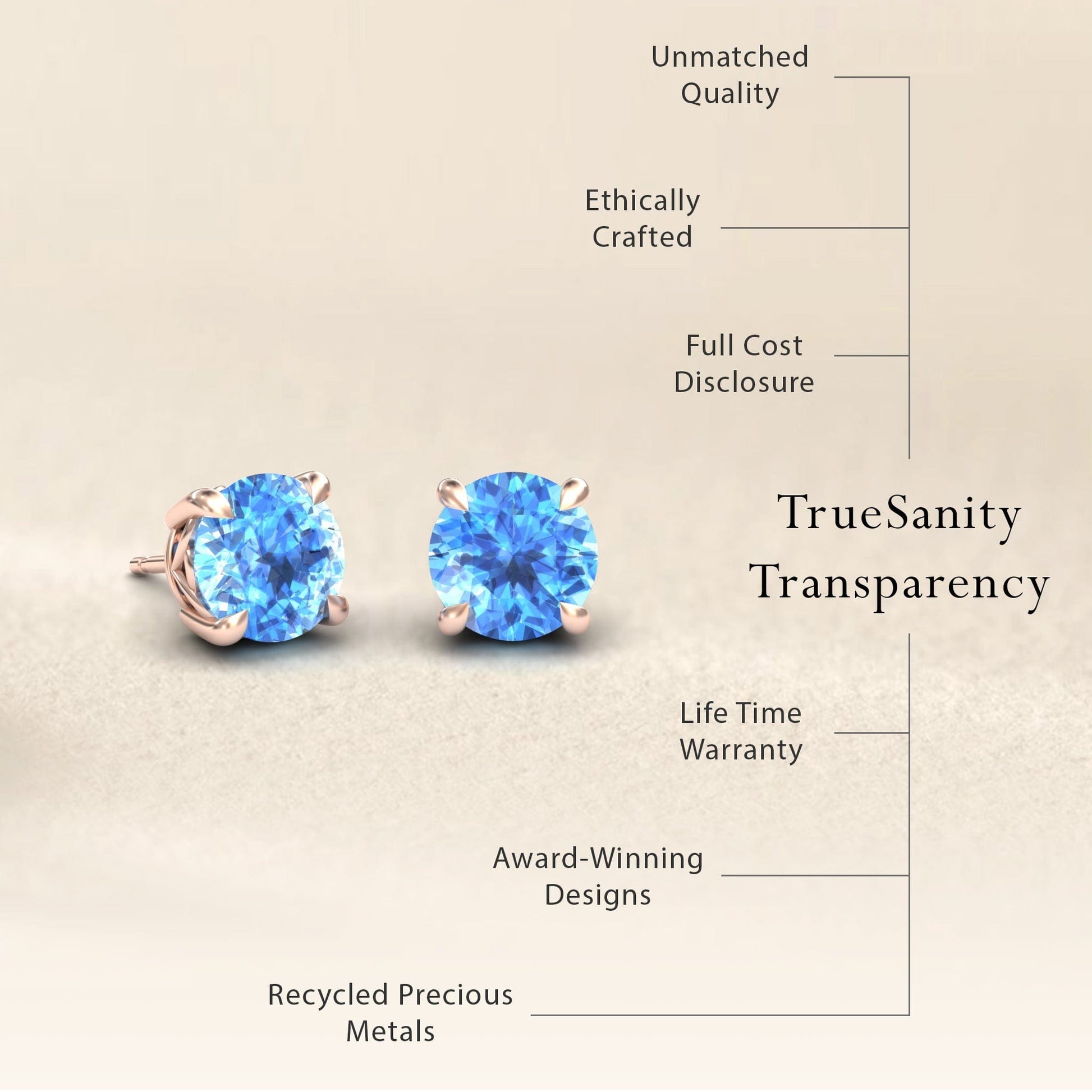 Elevate your style with our Swiss Blue Topaz Solitaire Stud Earrings – Lucy, featuring a brilliant round-cut Swiss Blue Topaz set in a classic prong setting. Available in White Gold, Rose Gold, Yellow Gold, or Blackened Gold, these elegant stud earrings bring a touch of modern sophistication and refined luxury to your everyday look.