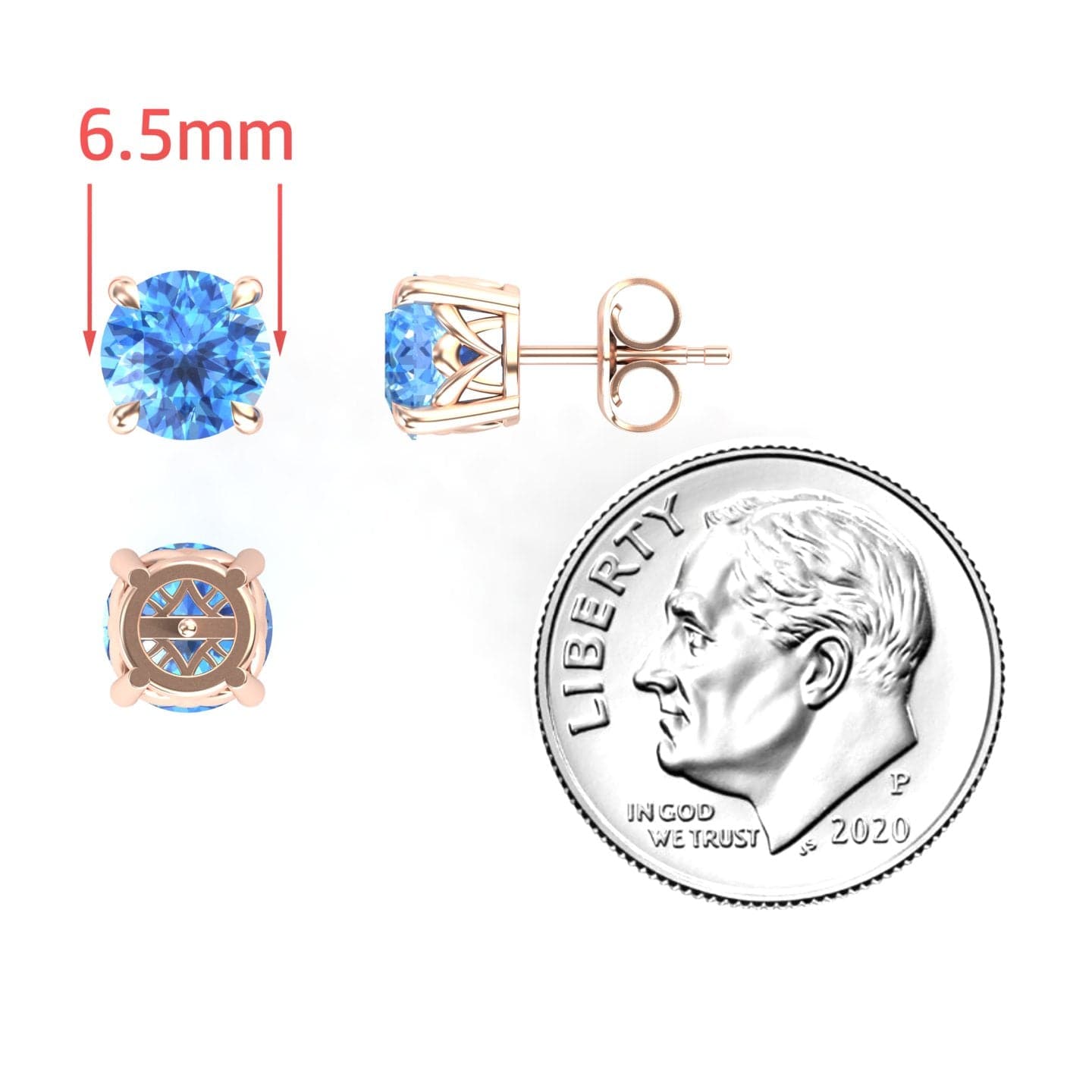 Lucy 6.5mm Round Swiss Blue Topaz Solitaire Stud Earrings