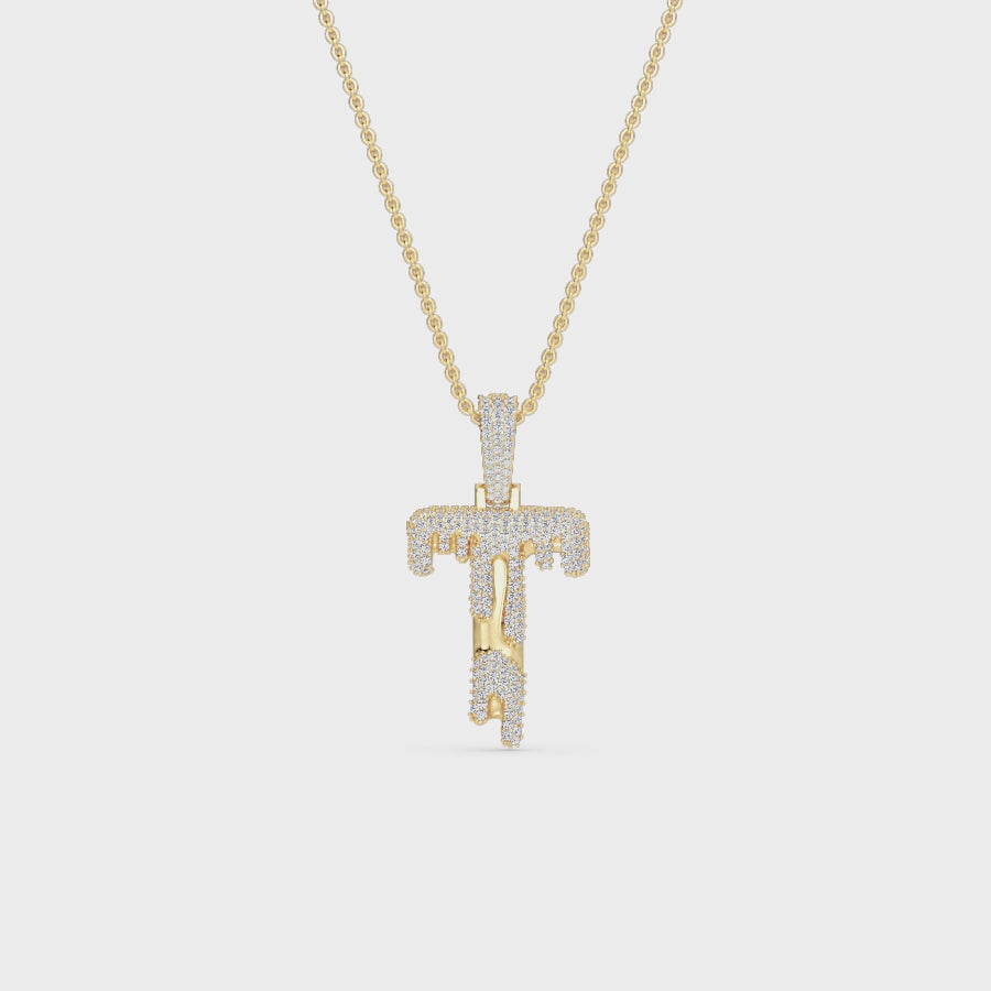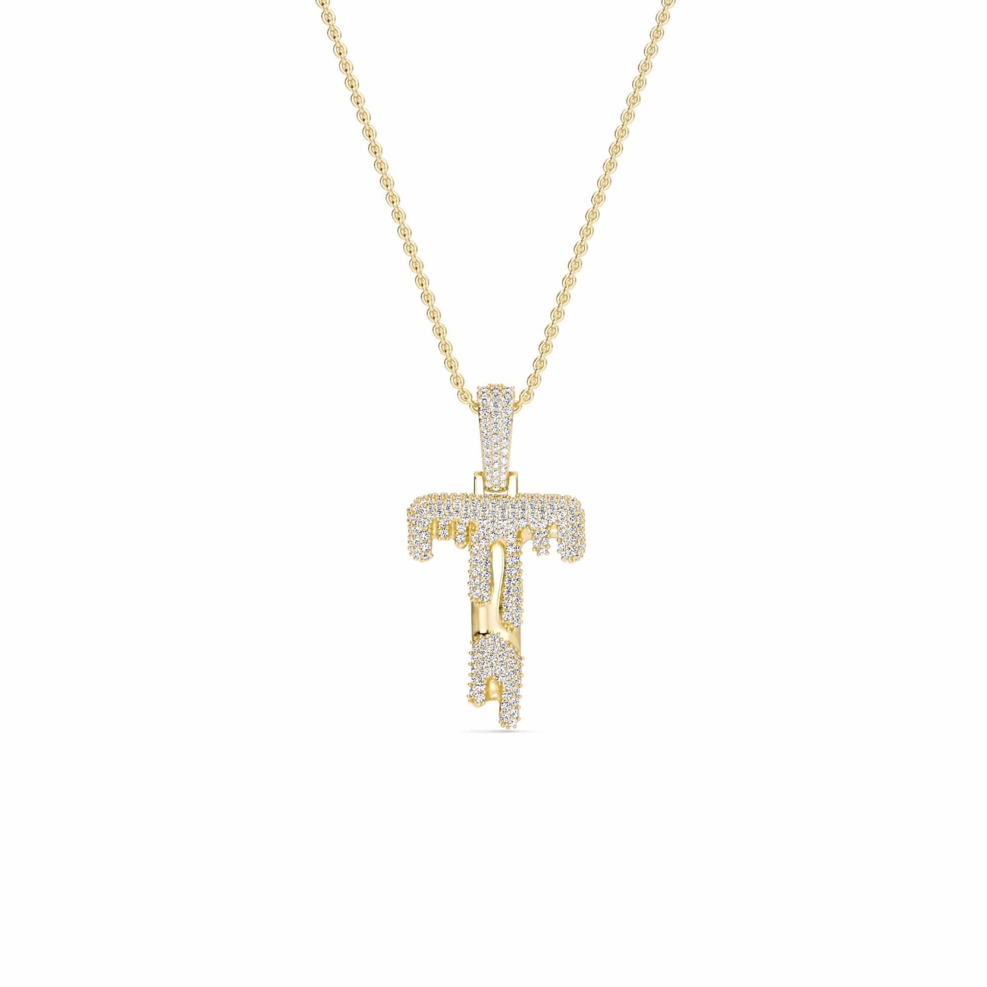 T Initial Dripping Diamond Pendant Necklace - Theo
