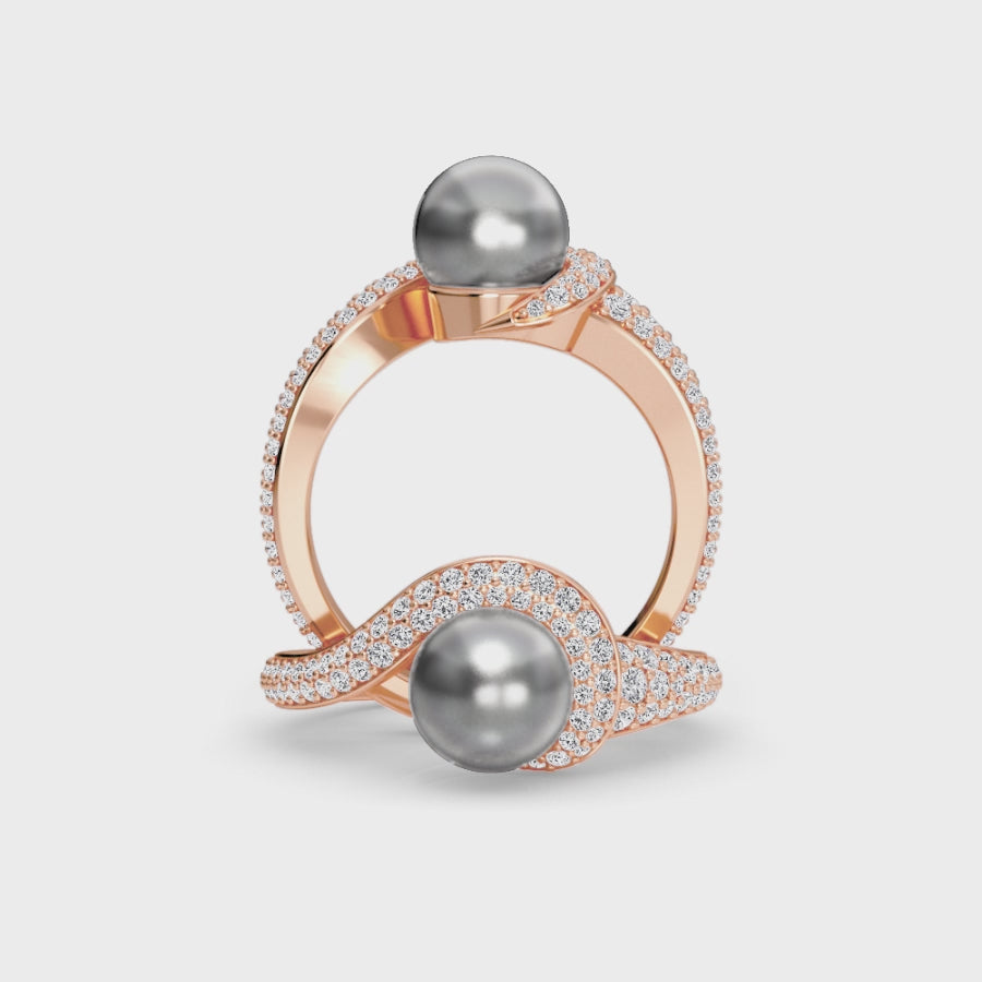 Home / Jewelry / Rings / Pearl Jewelry / Tahitian Pearl & Diamond Accented Twist Ring - Eliana