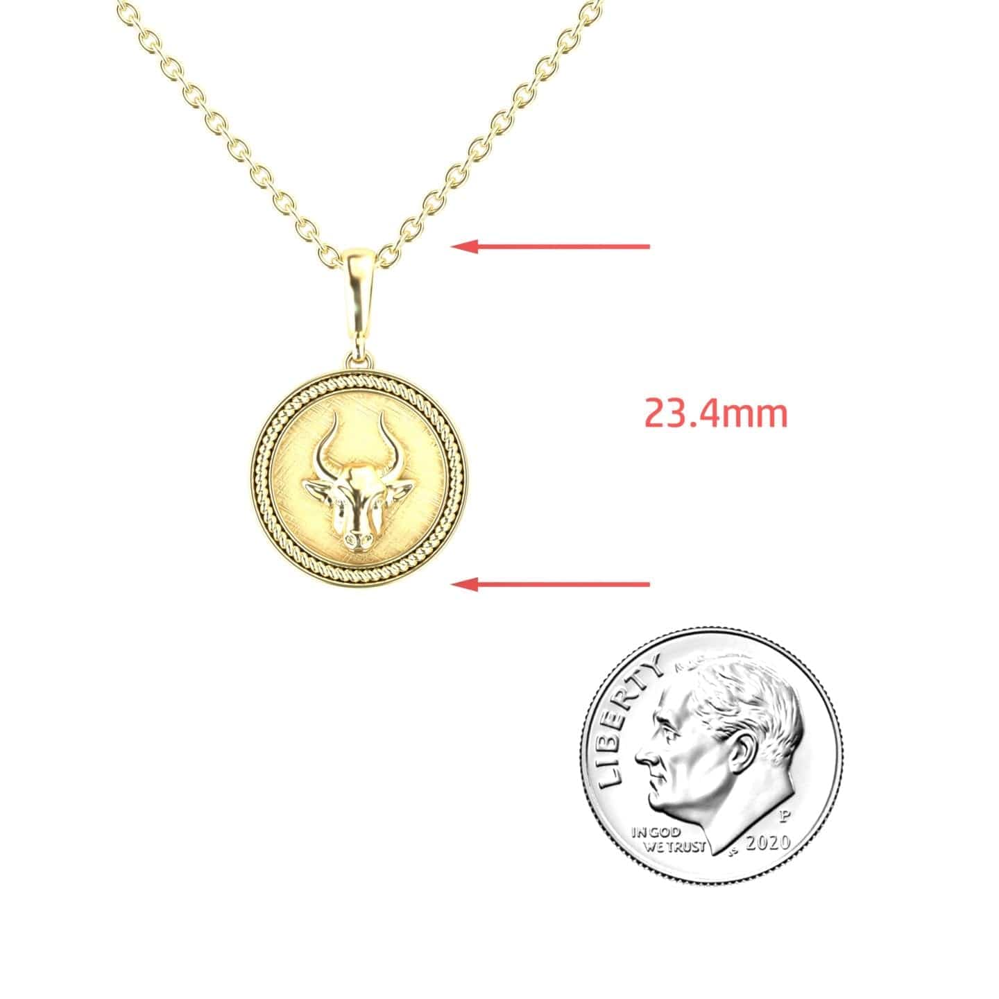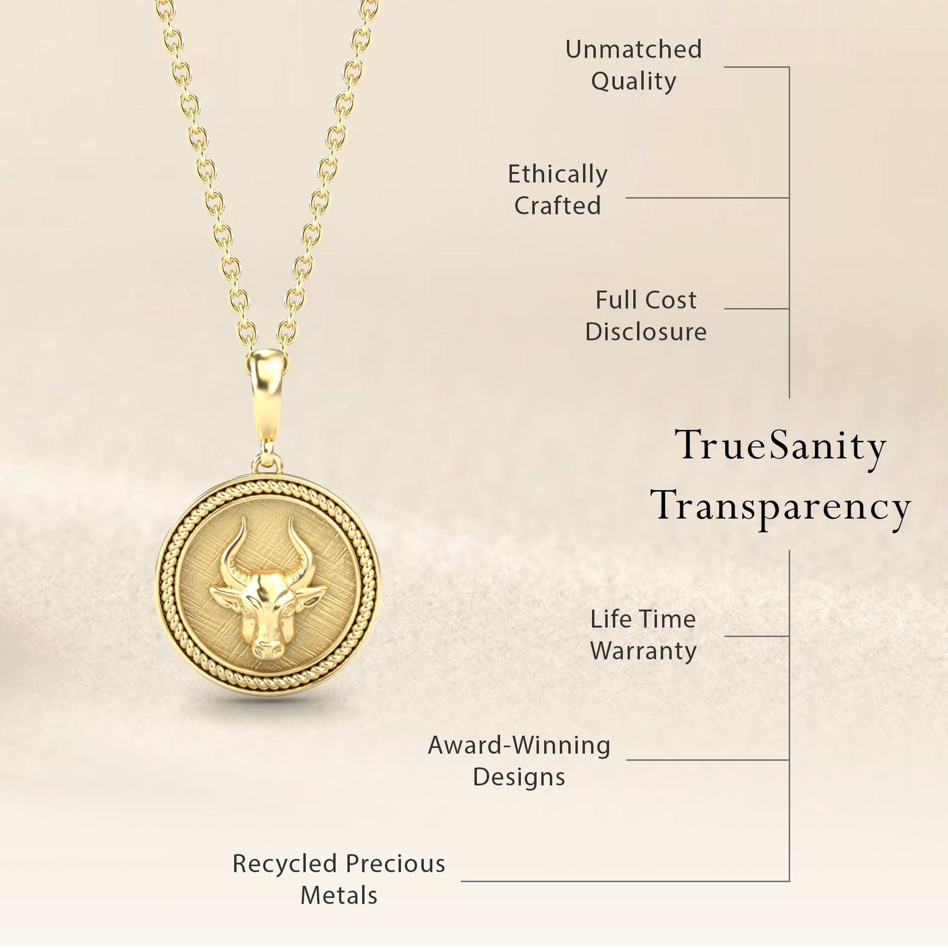 Grounded and strong, the Taurus Zodiac Medallion Necklace - Nandini symbolizes stability and elegance. Featuring a beautifully detailed Taurus emblem, this pendant represents determination, resilience, and a love for life’s luxuries. Available in White Gold, Rose Gold, Yellow Gold, and Blackened Gold, it’s the perfect talisman for the steadfast Taurus.