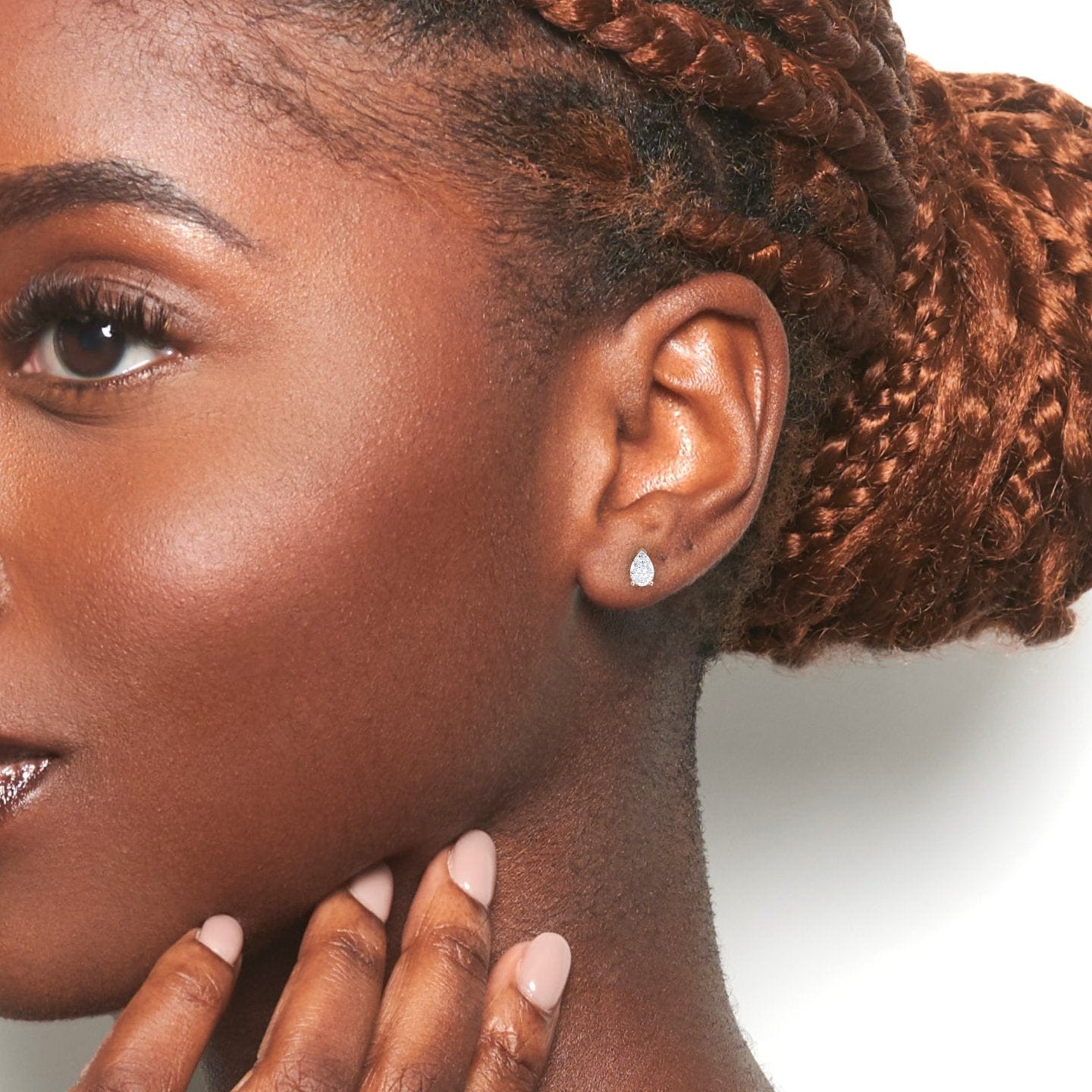 Refined and timeless, the White Diamond Three-Prong Martini Stud Earrings - Anvika feature a dazzling 1.0 ct.tw. pear-shaped diamond set in a sleek three-prong setting for a floating effect. Designed for everyday luxury, these classic studs are available in White Gold, Rose Gold, Yellow Gold, and Blackened Gold, perfect for any jewelry collection.