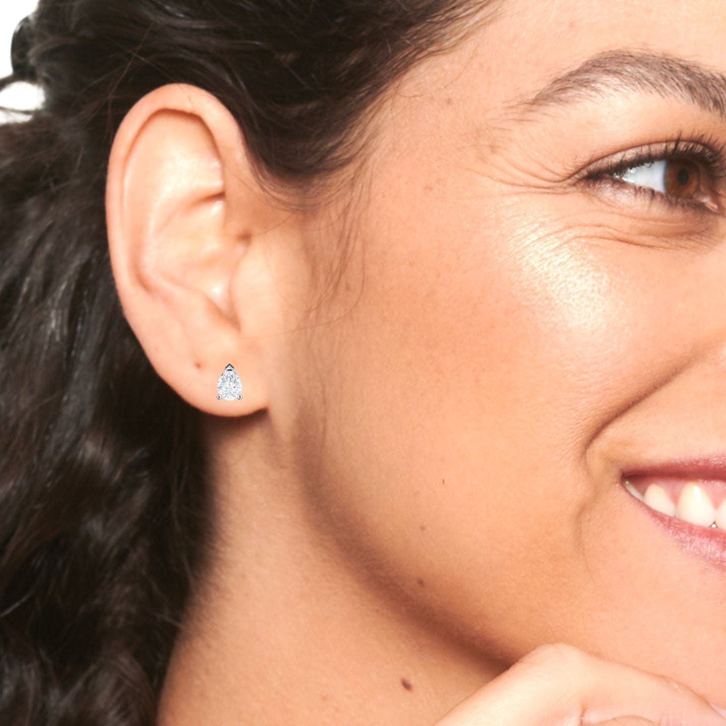 Radiate brilliance with the White Diamond Three-Prong Martini Stud Earrings - Anvika, featuring a breathtaking 1.5 ct.tw. pear-shaped diamond set in a sleek three-prong setting for a floating, minimalistic look. Available in White Gold, Rose Gold, Yellow Gold, and Blackened Gold, these timeless studs are the epitome of elegance and sophistication.