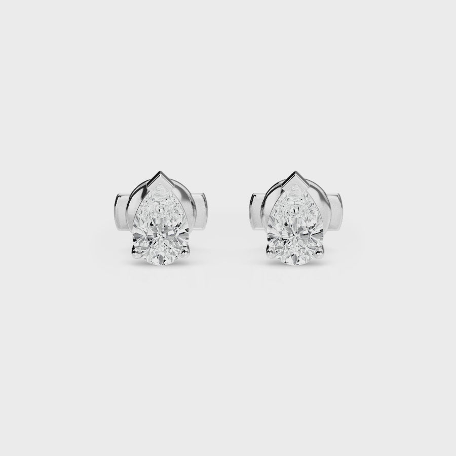 Anvika 1.0 t.w. Pear Lab White Diamond Three Prong Stud Earrings