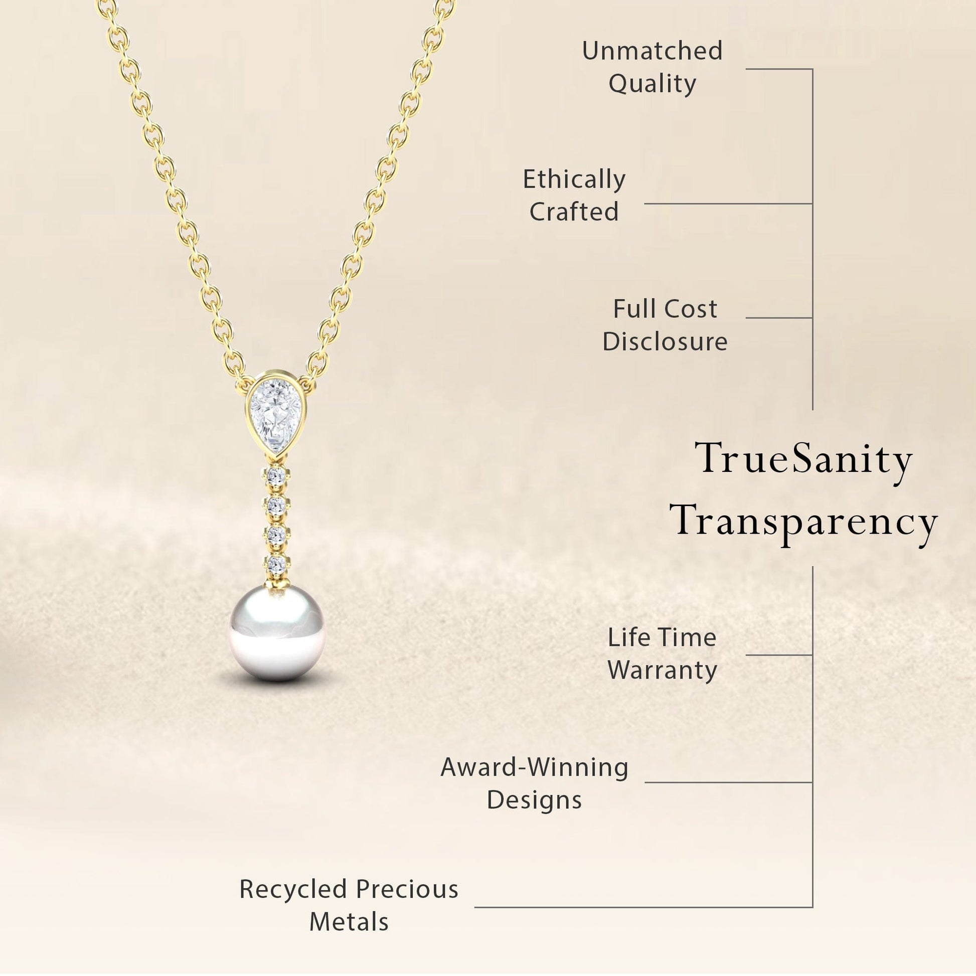 White Akoya Pearl & Diamond Drop Necklace - Nayana