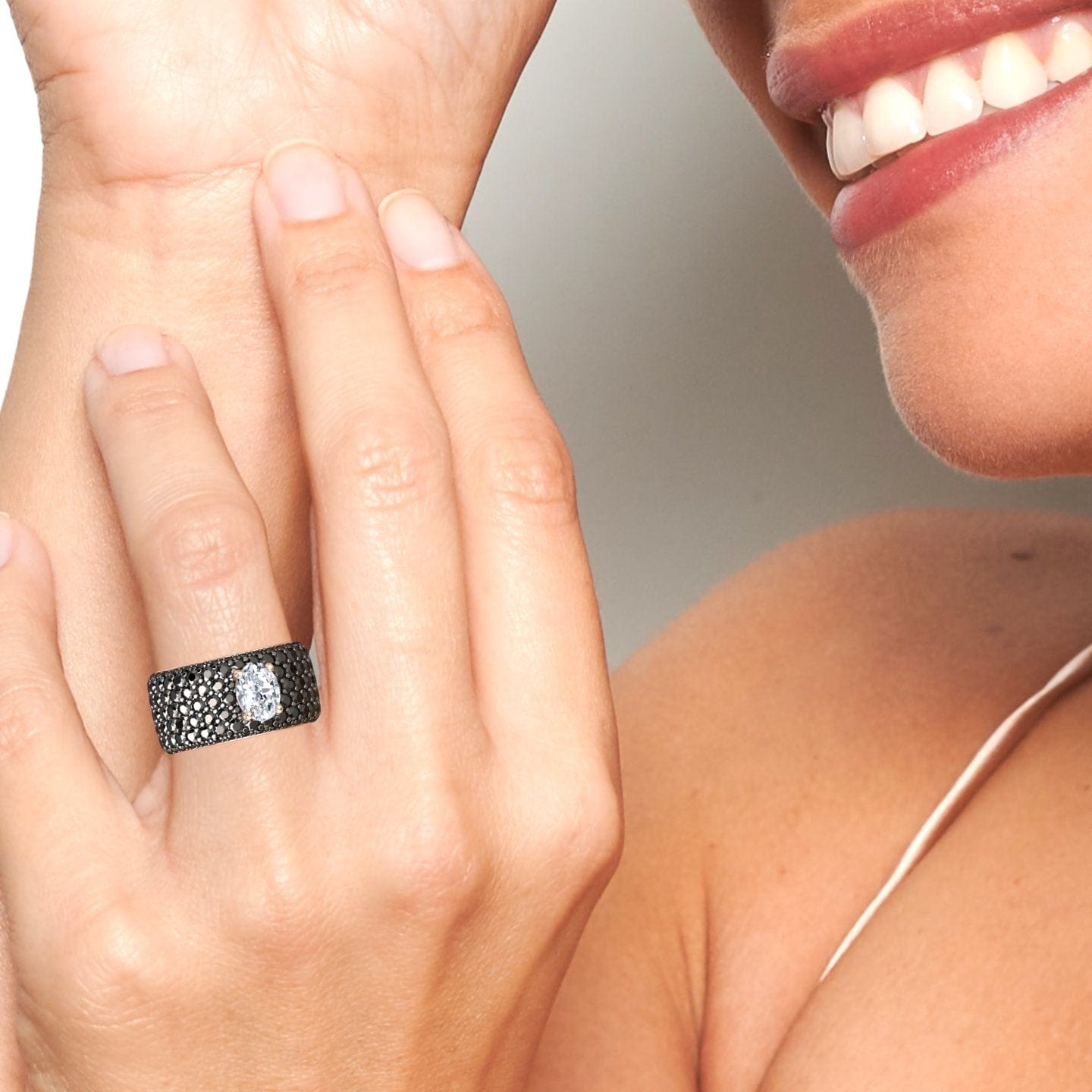 Indigo White & Black Diamond Pave Dome Statement Engagement Ring