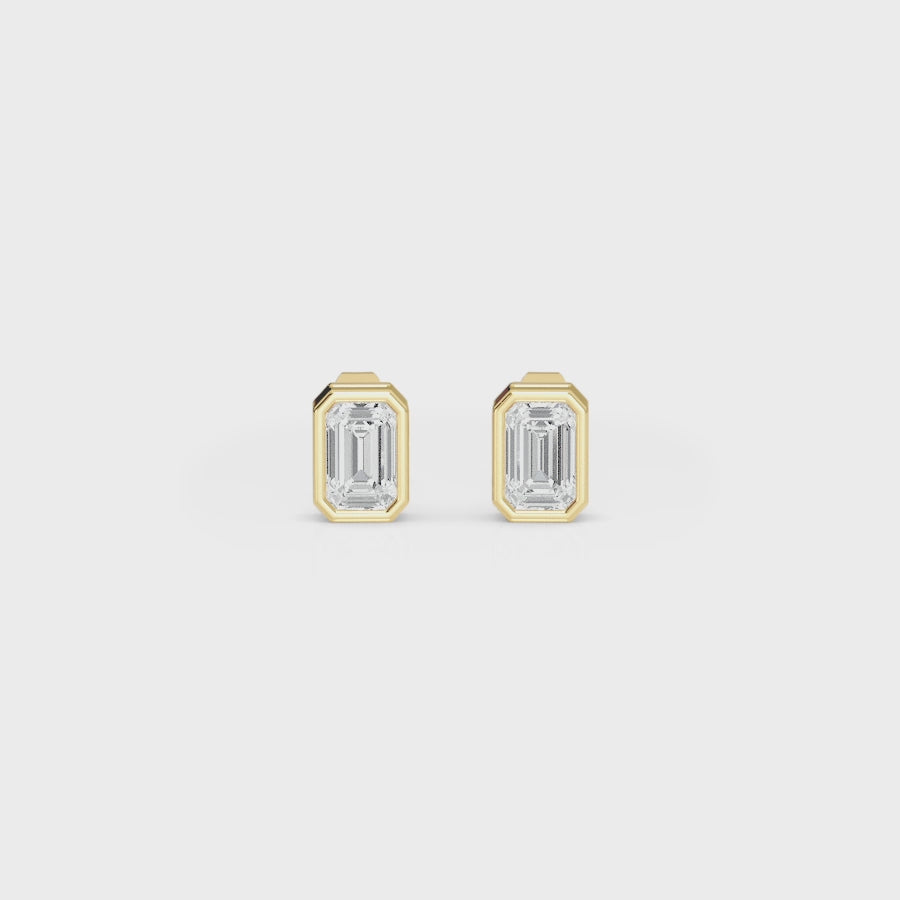 The Taylor earrings feature 0.25 carat total weight emerald-cut lab grown diamonds in a sleek bezel setting that radiates modern minimalism. Crafted in your choice of 14K White, Rose, Yellow, or Blackened Gold, they offer timeless sophistication with a sustainable twist.