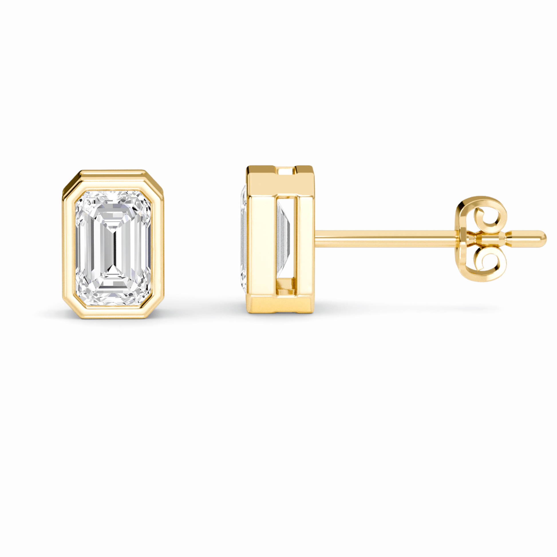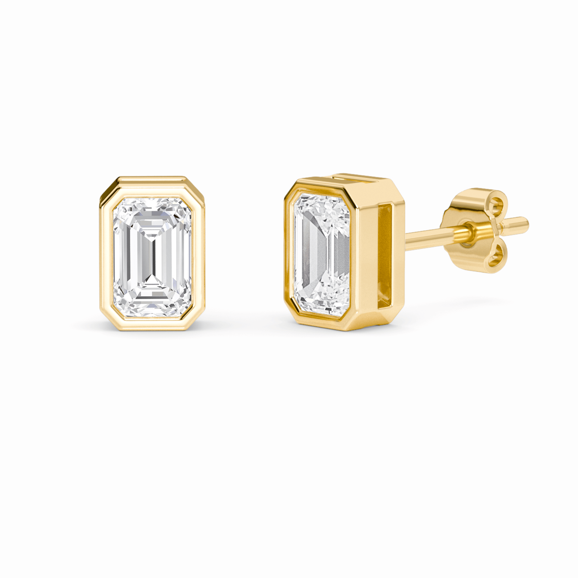 Elegant and timeless, our Taylor Bezel Set Lab Diamond Earrings feature 1.0 carat total weight of emerald-cut lab-grown diamonds. Meticulously crafted in 14K gold, available in White, Rose, Yellow, or Blackened Gold—perfect for modern minimalists seeking ethical luxury.