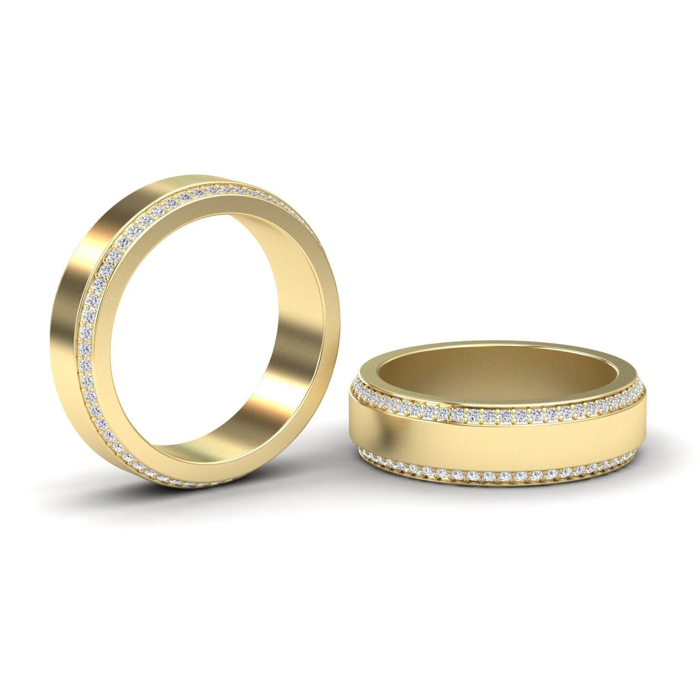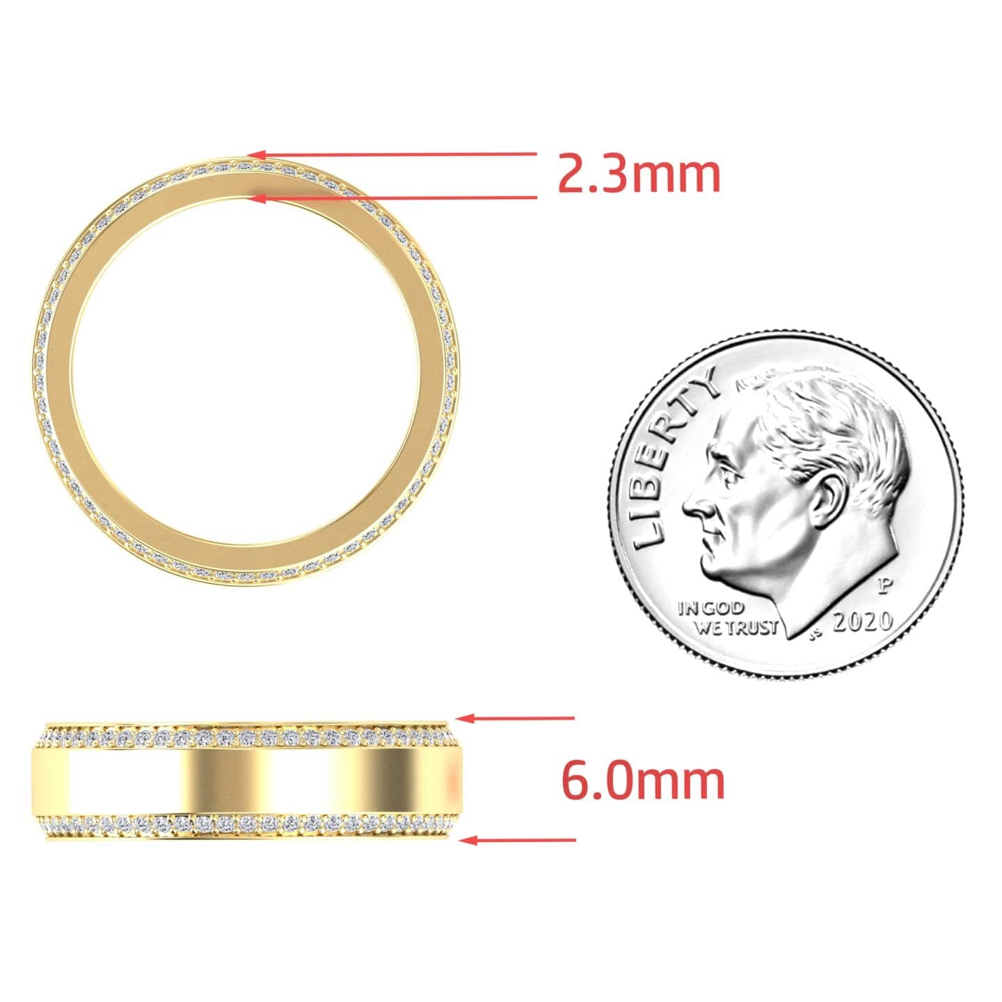 Embrace enduring sparkle with the Caleb ring, a sophisticated 6mm men's eternity wedding band featuring brilliant white diamonds on both sides. This exquisite ring, crafted in your choice of 14k white gold, rose gold, yellow gold, or blackened gold, symbolizes everlasting love and commitment.