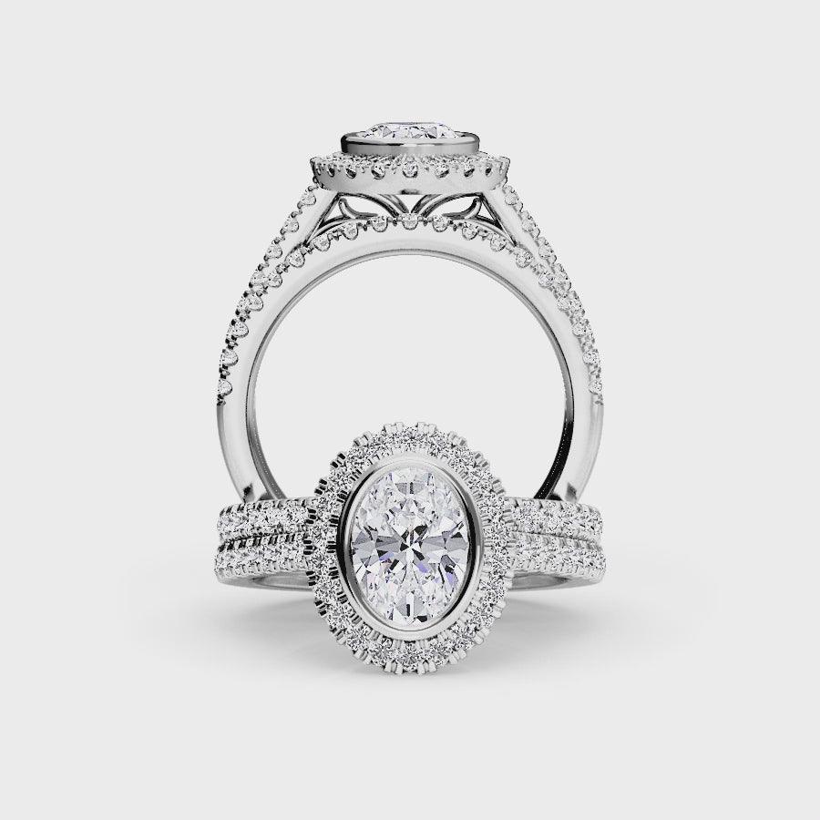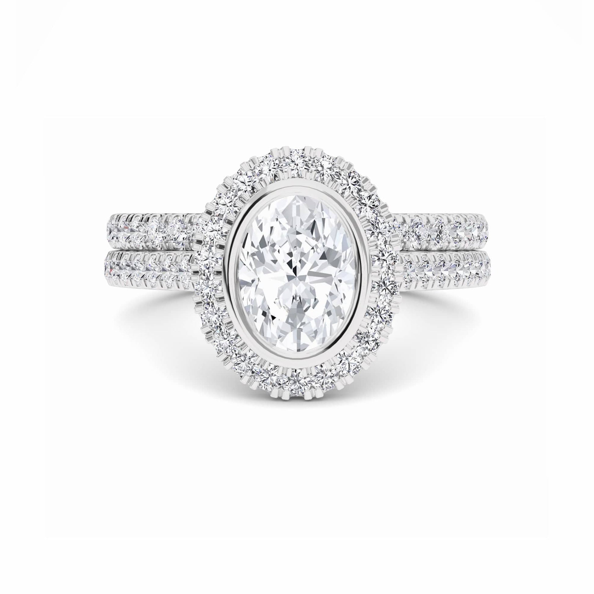 Michaela White Diamond Bezel Halo Bridal Ring Set Engagement Ring