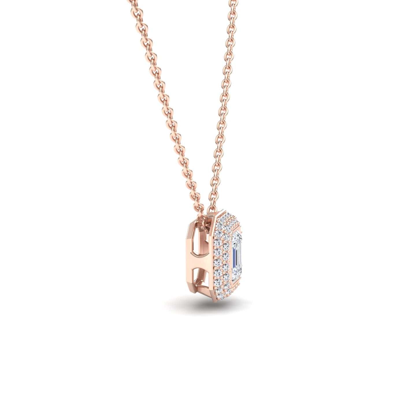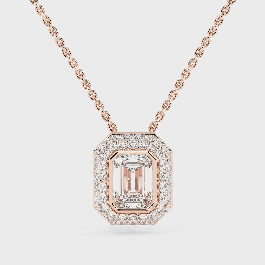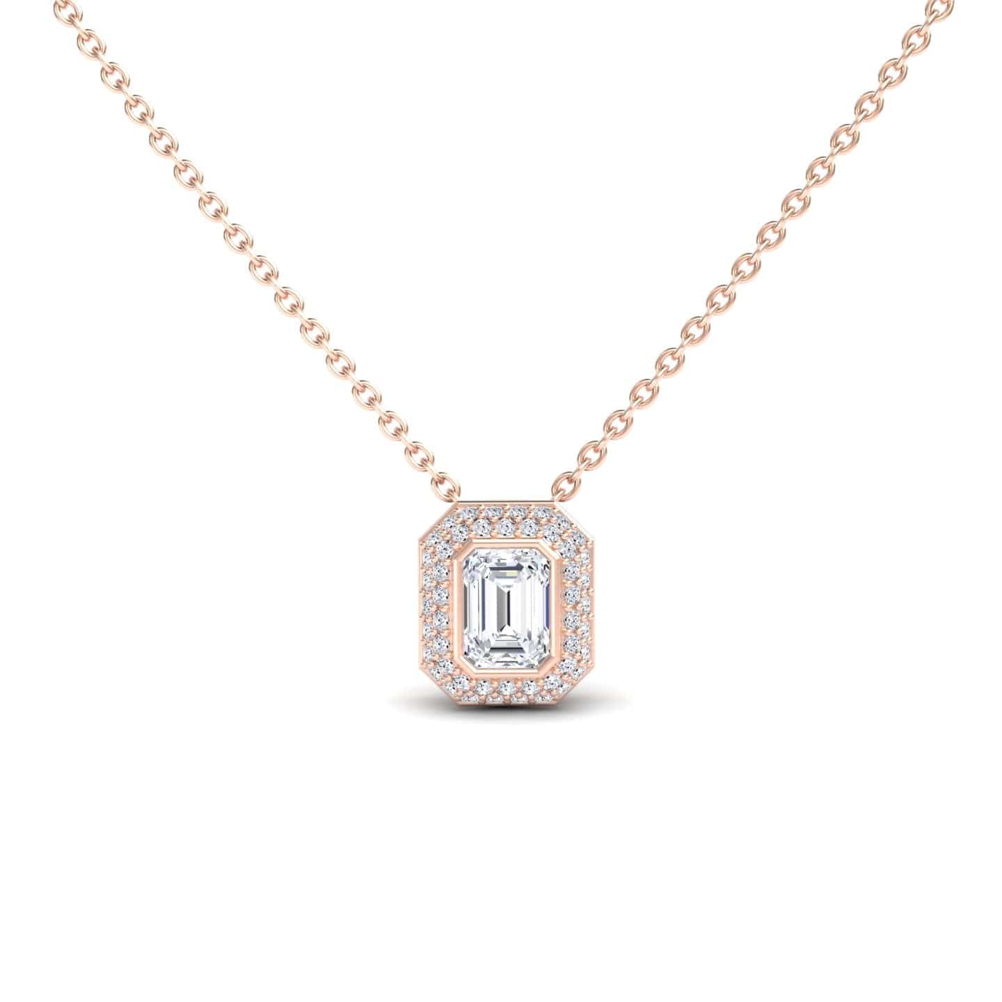 The Leslie necklace features a brilliant white diamond center securely held in a smooth bezel setting and surrounded by a delicate halo of sparkling round diamonds. Crafted in your choice of five exquisite 18k gold options – white gold, rose gold, yellow gold, blackened gold, and platinum – this necklace offers a modern yet elegant sparkle.