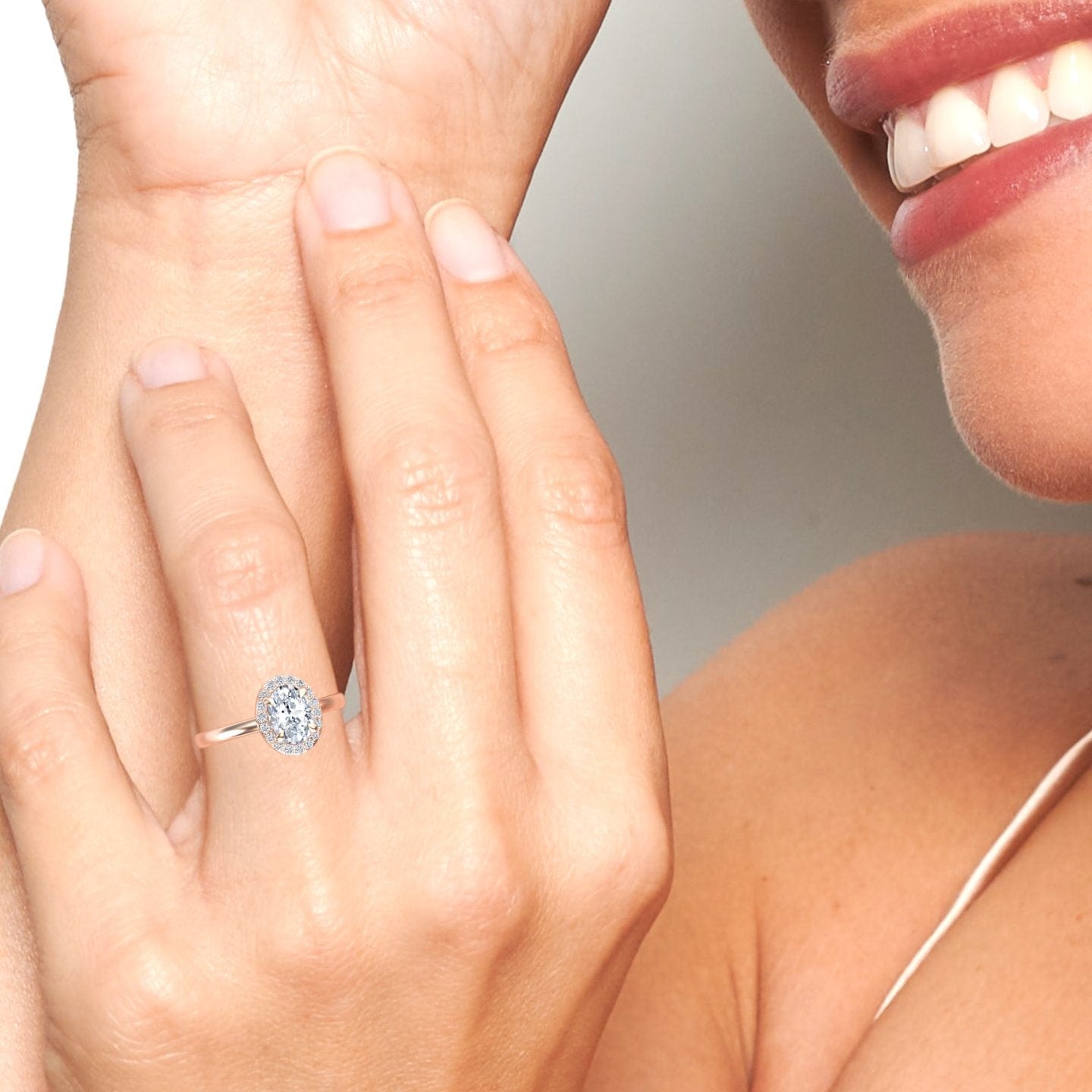 White Diamond Celestia Glow Halo Classic Band Engagement Ring - Xueli