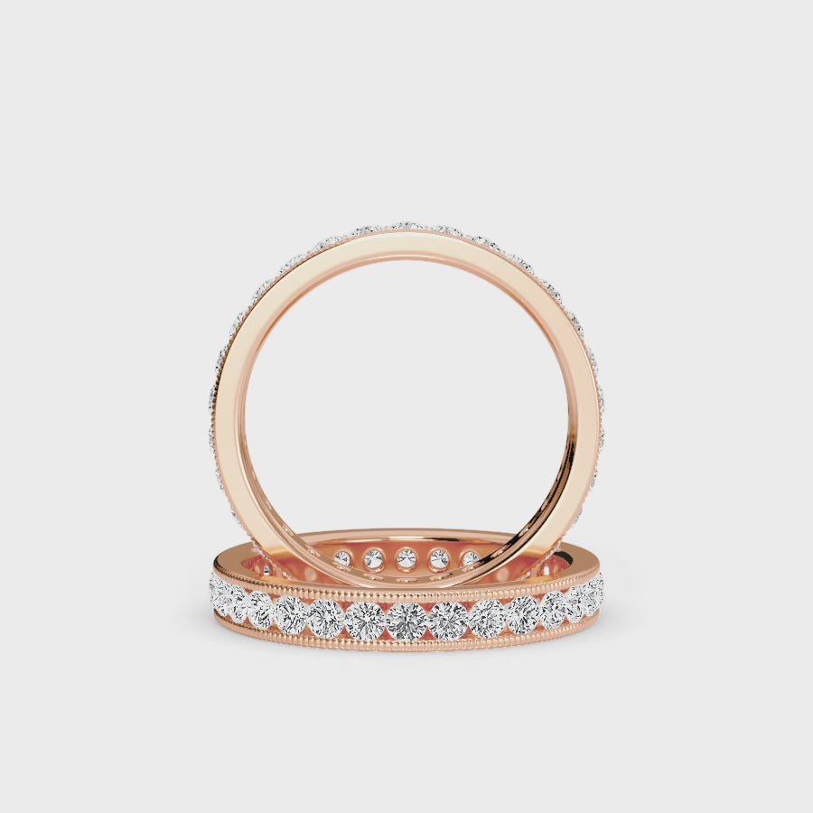 The Norah eternity band features 30 round brilliant-cut white diamonds, expertly channel-set to create a continuous shimmer of brilliance. Available in 18K White, Yellow, Rose, Blackened Gold, and Platinum, this timeless design is perfect for weddings, stacking, or milestone celebrations.