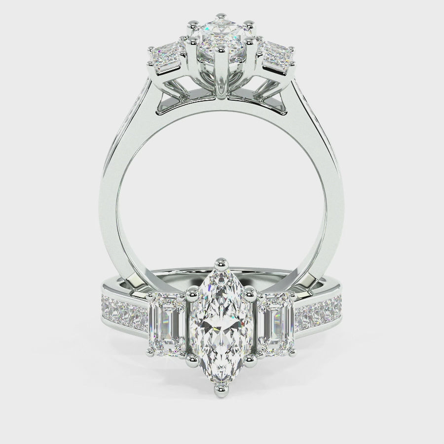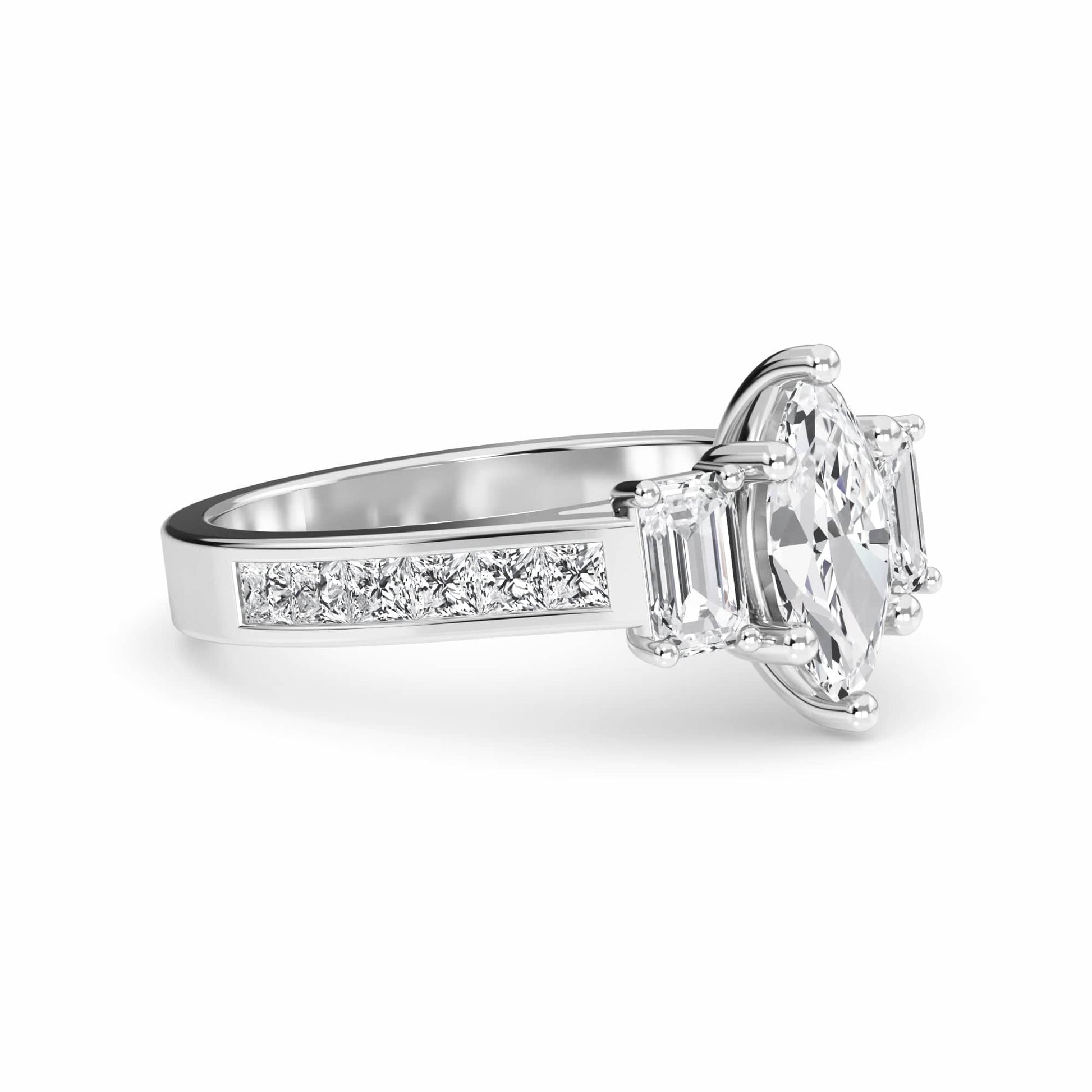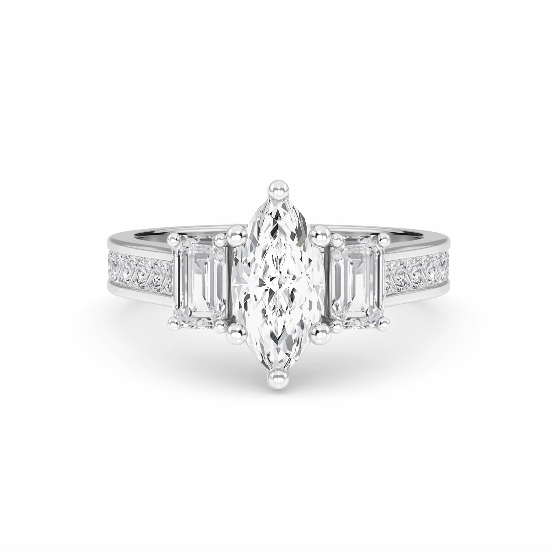White Diamond Classic Elegance Three-Stone Engagement Ring - Sloan