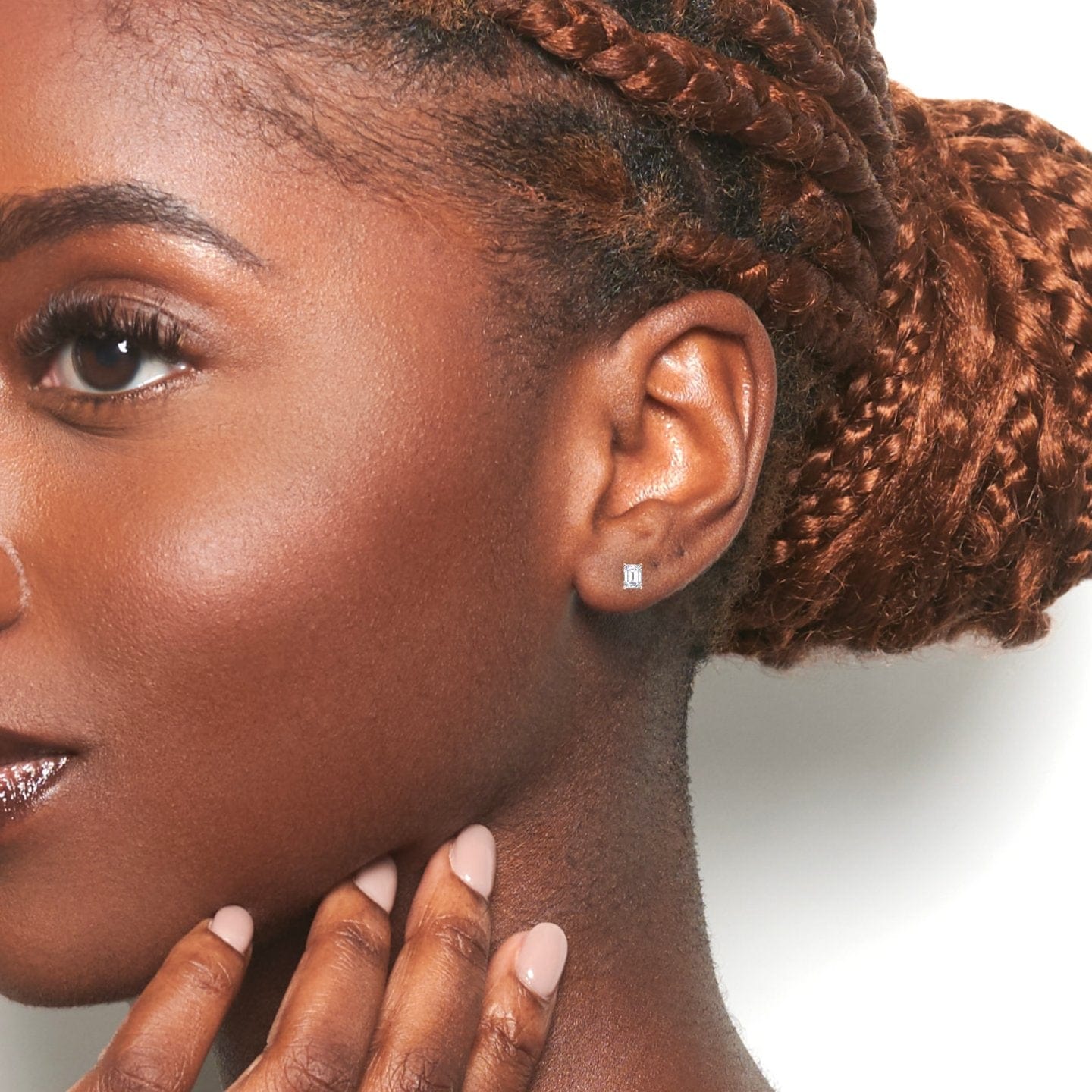 Elevate your style with the White Diamond Classic Four-Prong Stud Earrings - Jimena (0.5 ct. tw.), featuring emerald-cut white diamonds for a sleek, modern look. Set in a timeless four-prong setting, these 0.50 ct. diamonds exude brilliance and sophistication. Available in White Gold, Rose Gold, Yellow Gold, and Blackened Gold, they are a perfect blend of elegance and versatility for any occasion.