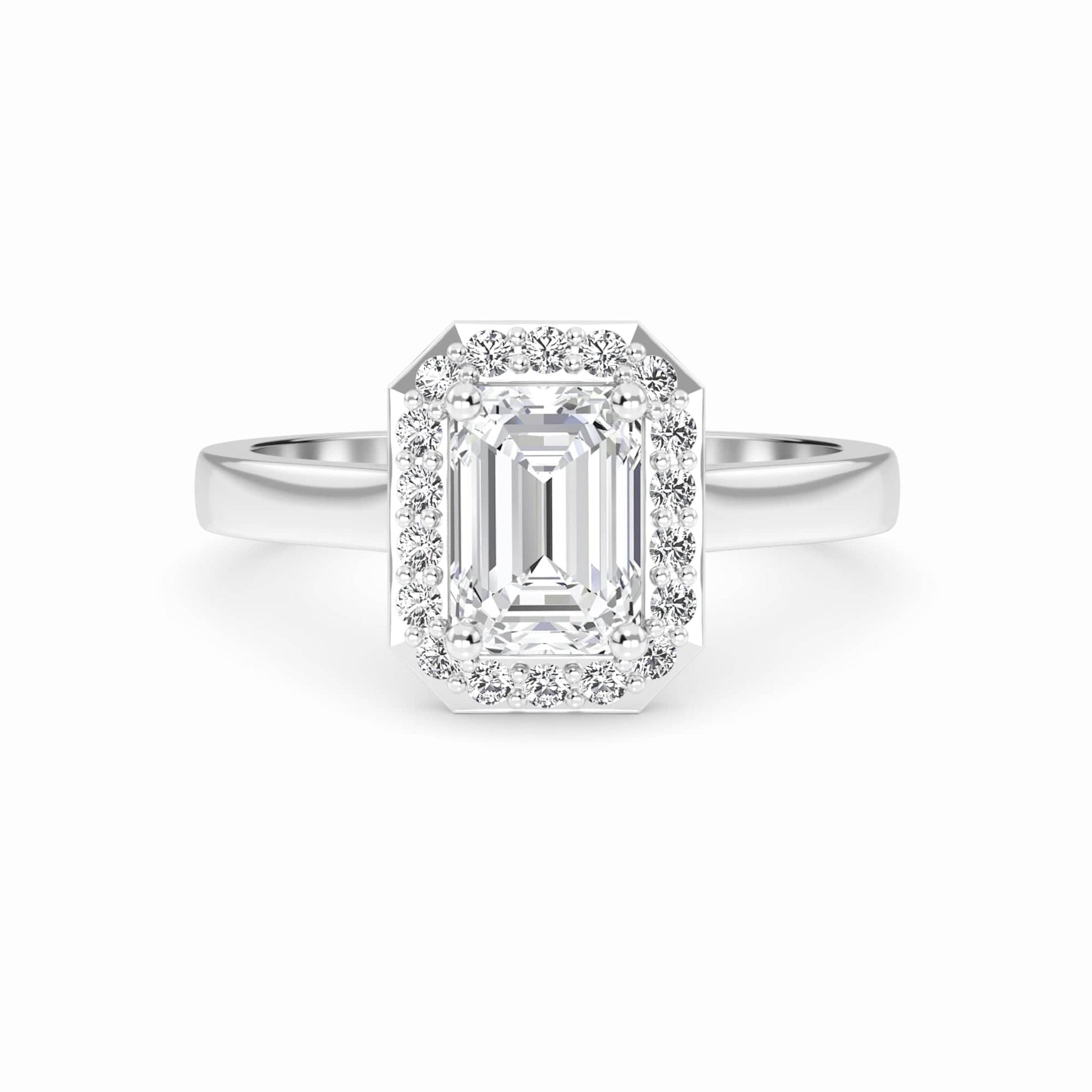 White Diamond Classic Halo Engagement Ring - Harperly - 18K White Gold - 0.300 Carat Emerald Diamond