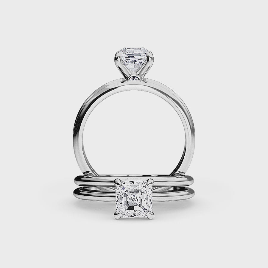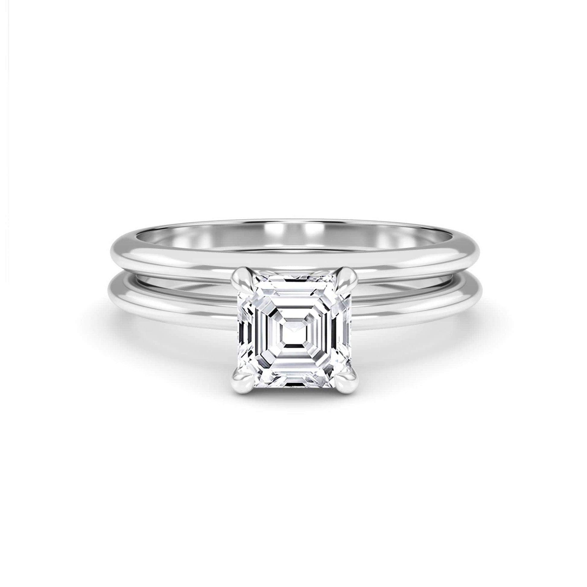 White Diamond Classic Solitaire Bridal Set Engagement Ring - Tania