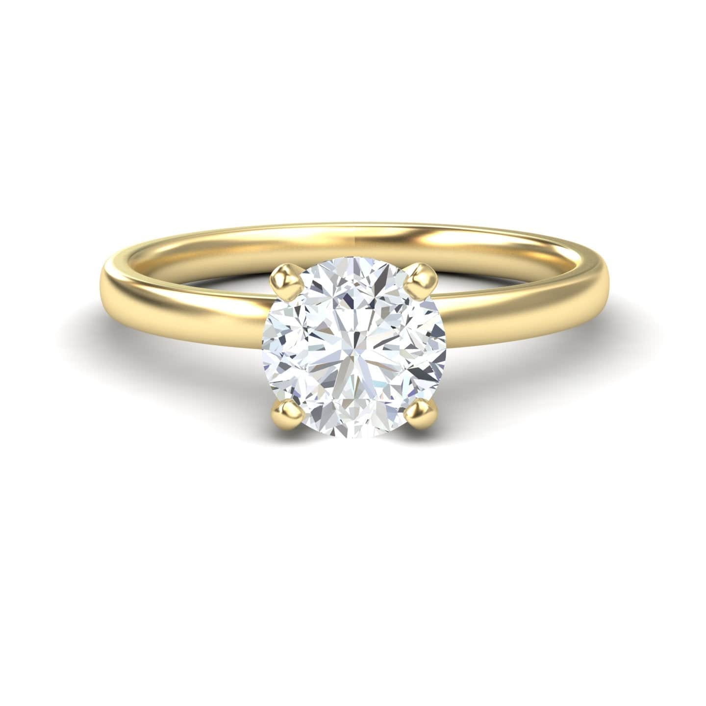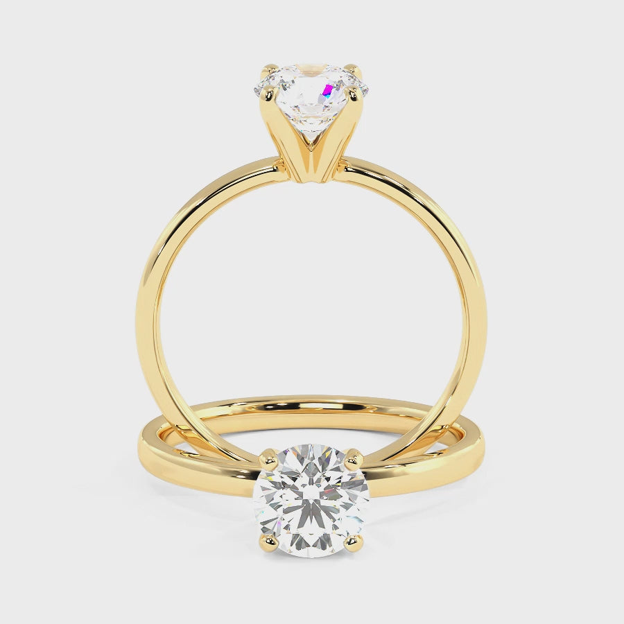 A timeless symbol of love, the Vaanya Classic Solitaire Engagement Ring features a brilliant white diamond set in a sleek, elegant band. Crafted in your choice of 18K White, Rose, Yellow, Blackened Gold, or Platinum, this minimalist design showcases the diamond's brilliance with refined sophistication—perfect for modern brides seeking enduring beauty.