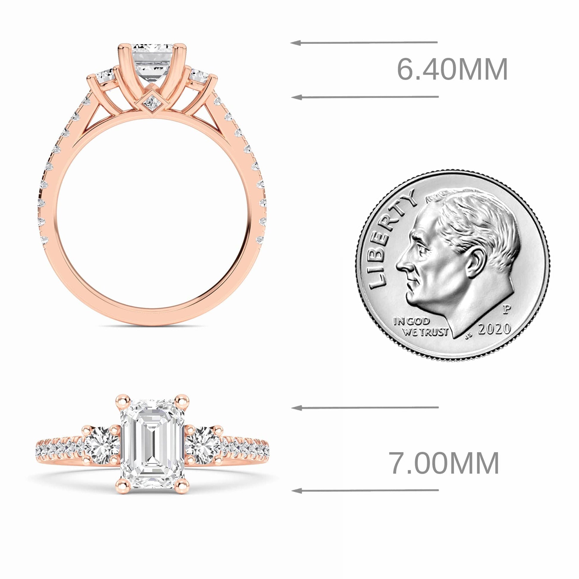 White Diamond Classic Three-Stone Pave Engagement Ring - Sienna