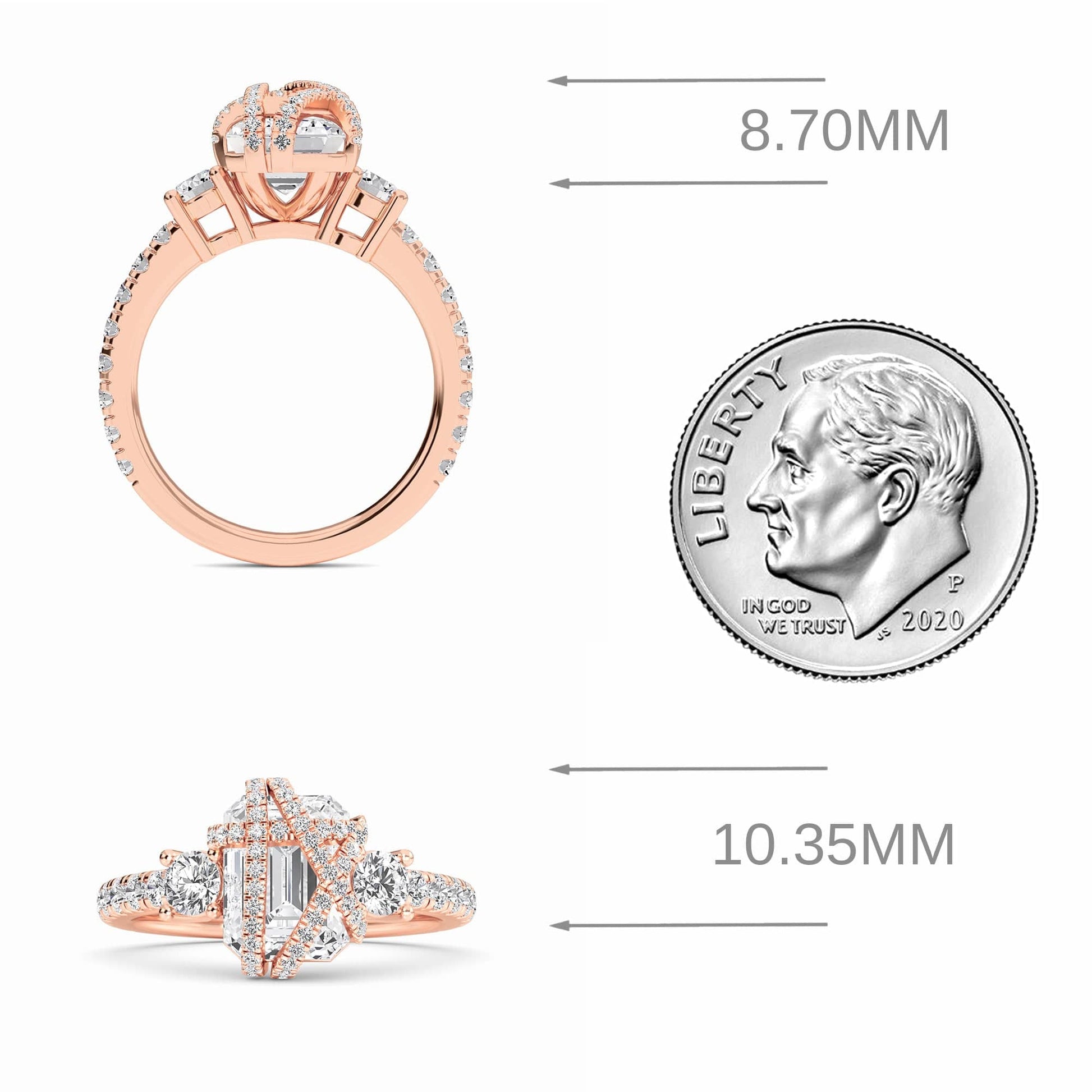 White Diamond Criss-Cross Halo Three-Stone Engagement Ring - Tisha