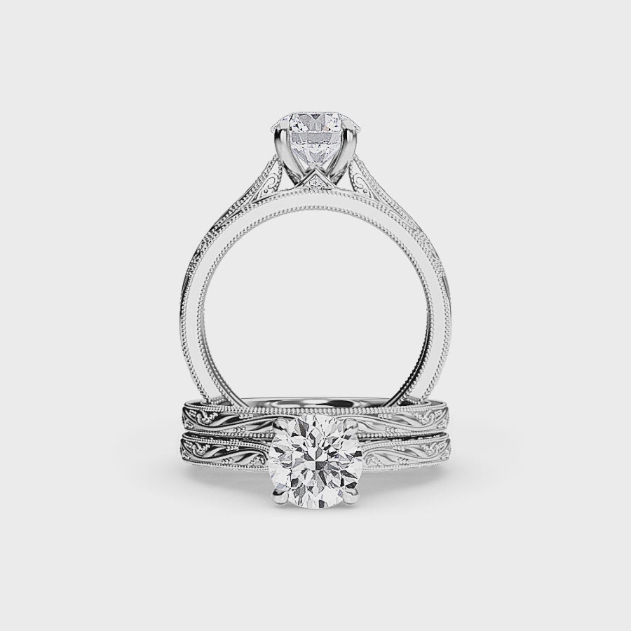 Home / All Engagment Ring / Solitaire / White Diamond Delicate Vine-Inspired Bridal Set Engagement Ring - Adelaide