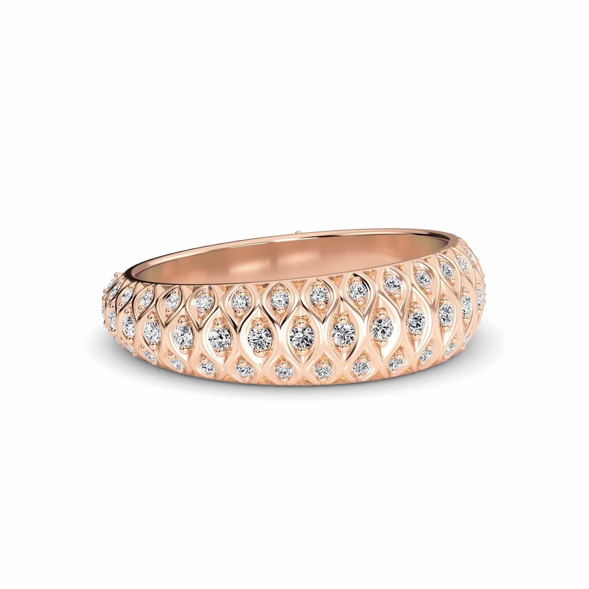 Embrace modern elegance with the Sarika Ring, featuring a unique dome design crafted with sparkling white diamonds. This exquisite ring, available in 14k white gold, rose gold, yellow gold, or blackened gold, adds a touch of understated luxury to any finger.