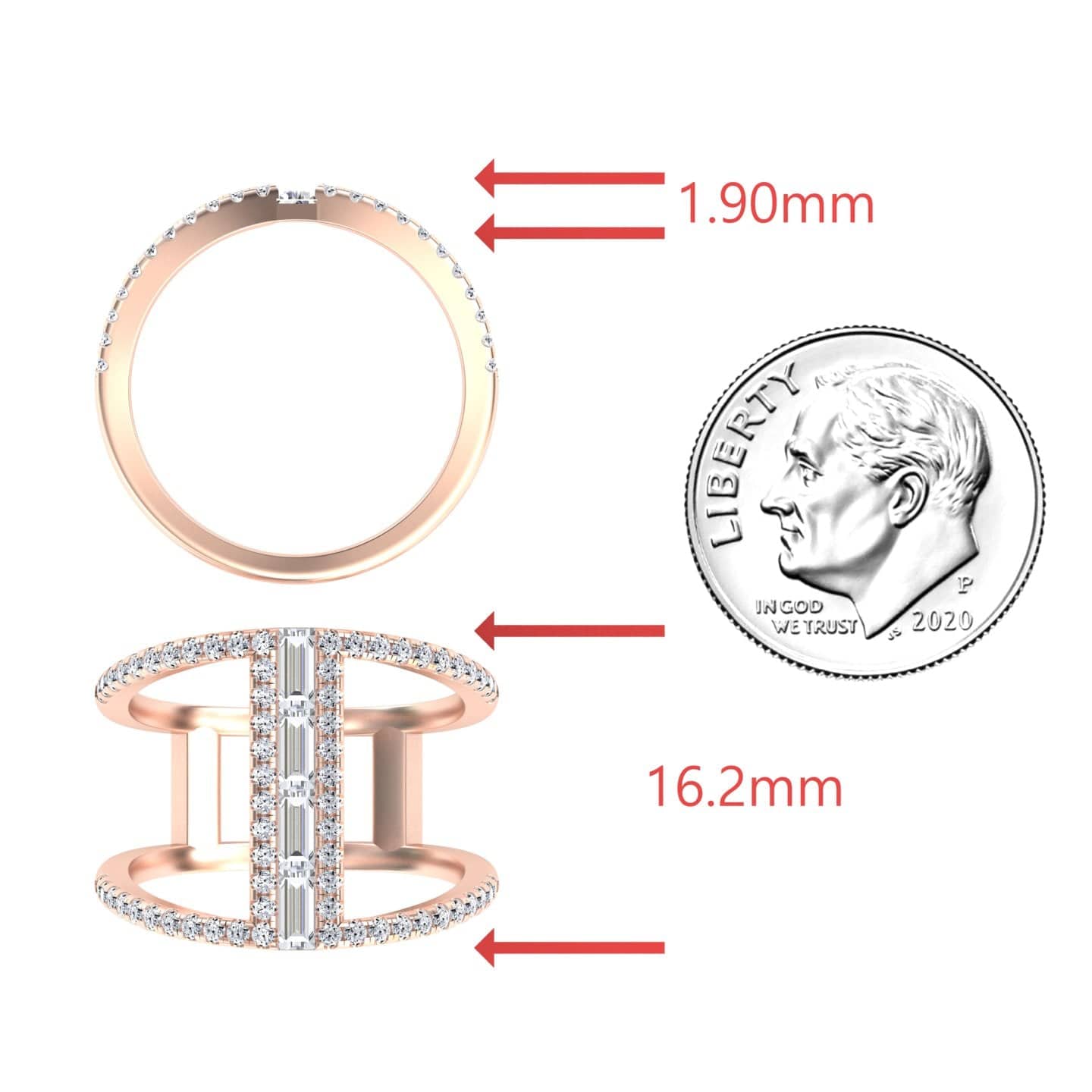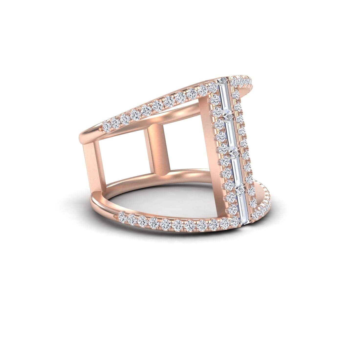 Elevate your style with the White Diamond Double Band Open Cuff Ring - Luci, featuring a striking design with four dazzling baguette-cut diamonds at the center, framed by shimmering round diamonds. This modern statement ring, available in White Gold, Rose Gold, Yellow Gold, and Blackened Gold, blends bold elegance with timeless sophistication. Perfect for both everyday luxury and special occasions.