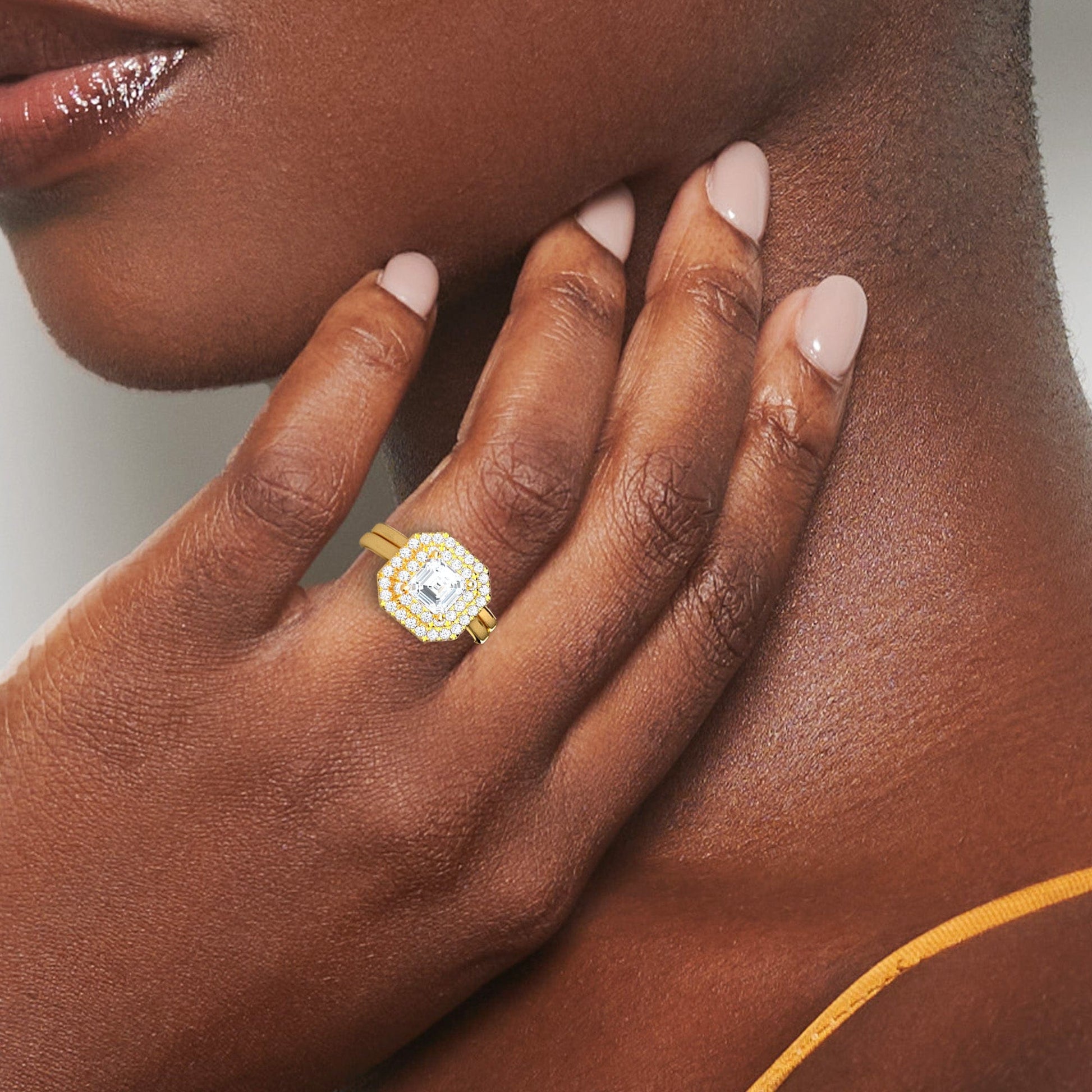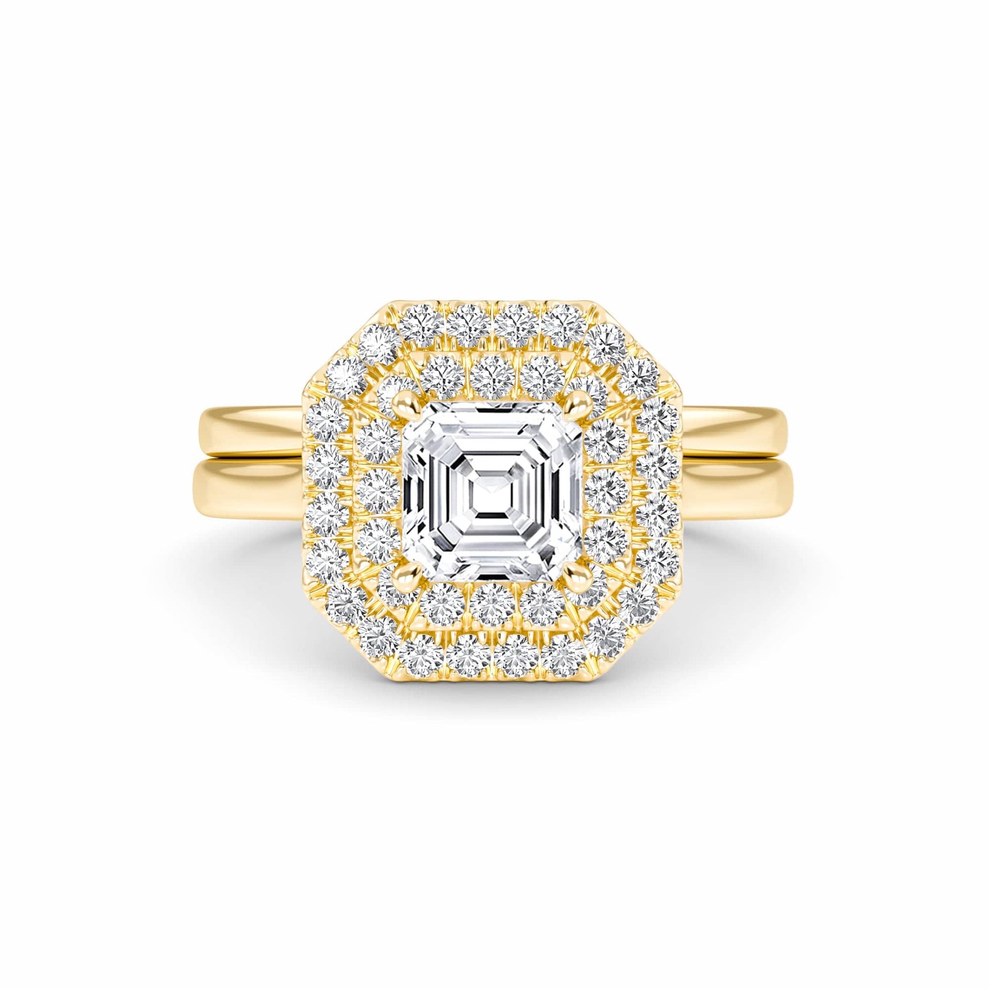 White Diamond Double Halo Bridal Set Engagement Ring - Wendy