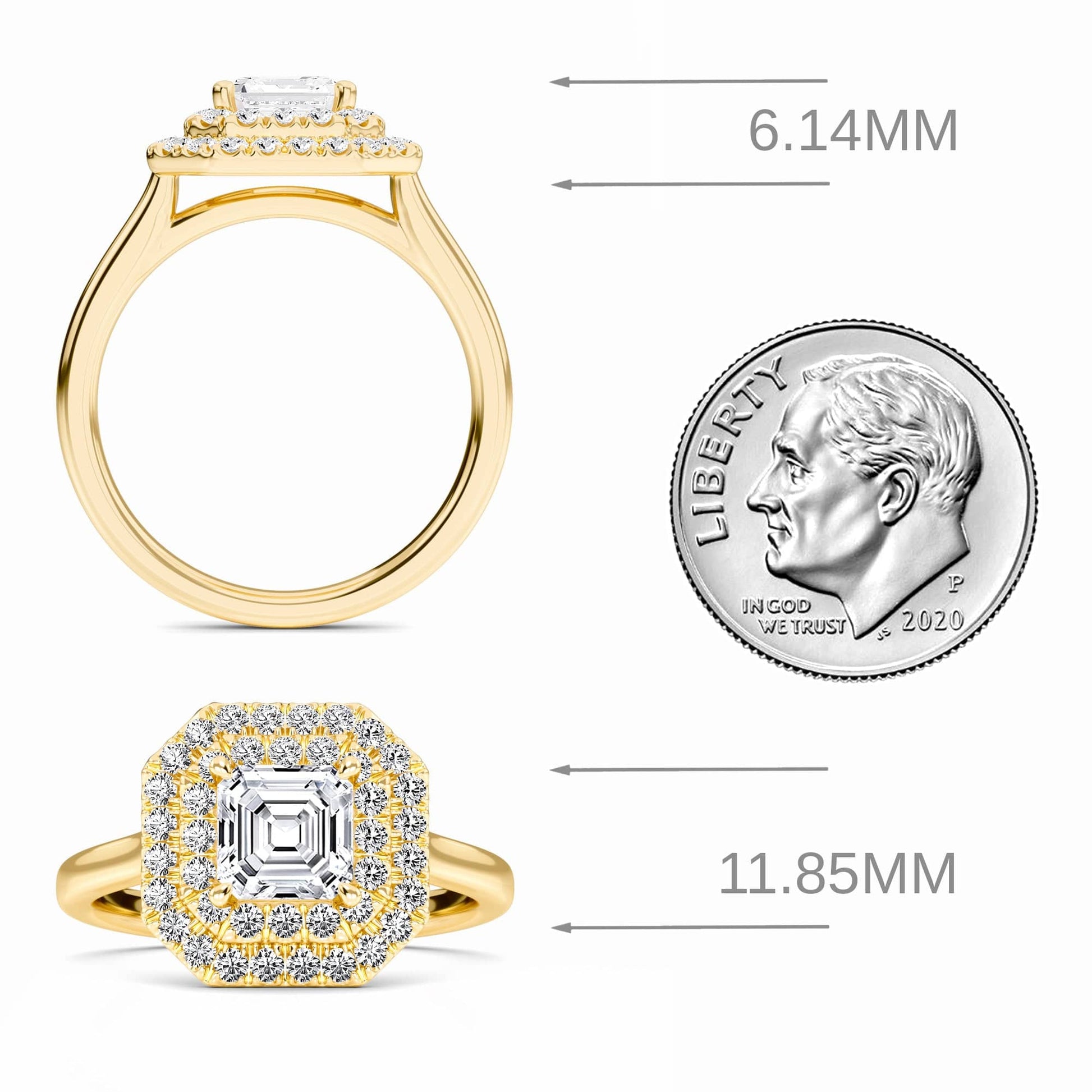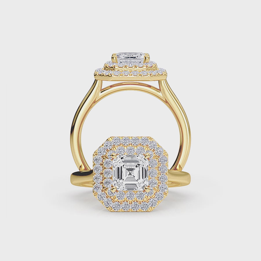 White Diamond Double Halo Engagement Ring - Aaliyah