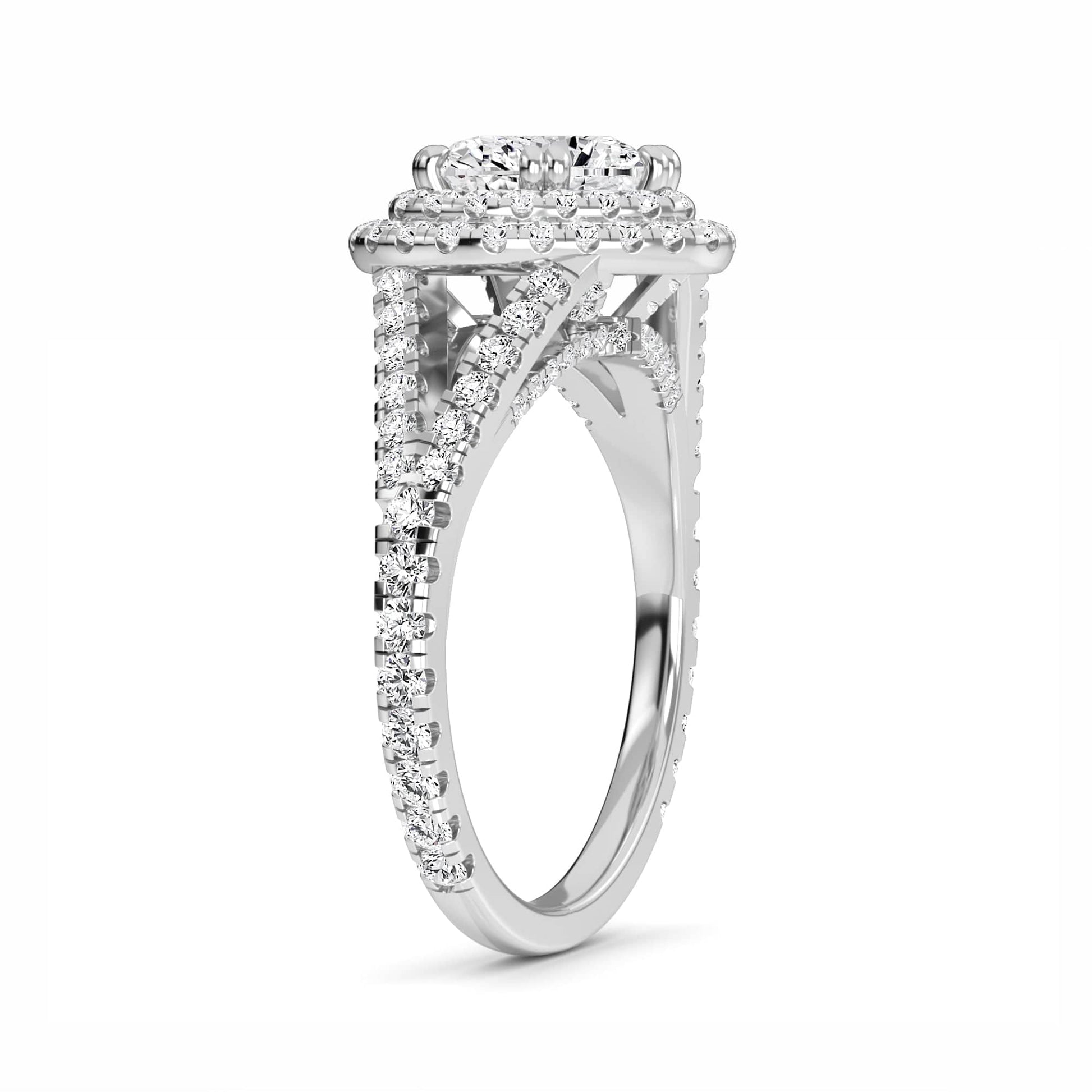 White Diamond Double Halo Pave Engagement Ring - Genevieve