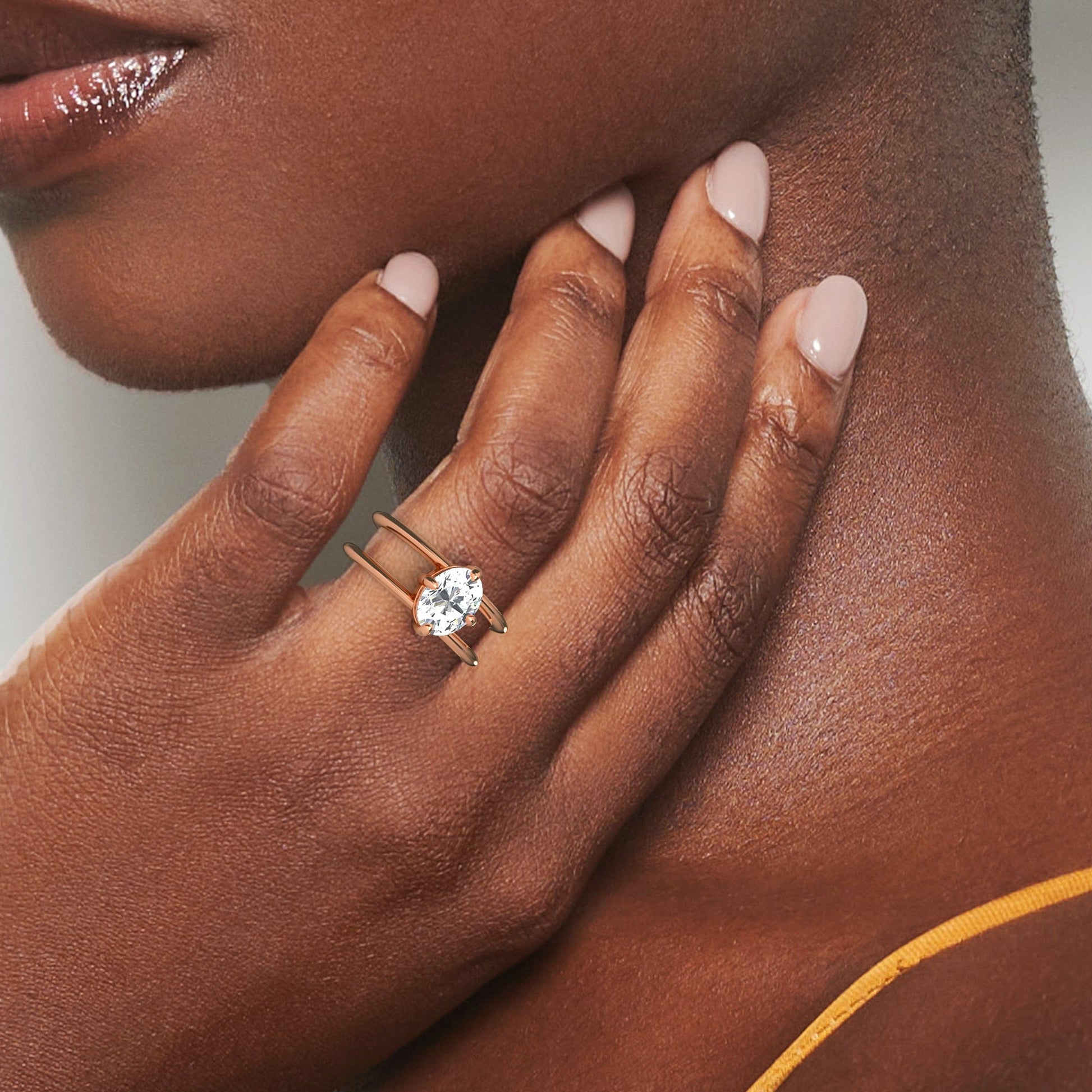 Elevate your 'yes' moment with the Nova engagement ring, featuring a round brilliant center diamond embraced by a hidden halo and sleek double shank band. Designed for timeless elegance with a modern twist, this showstopping ring is available in 18k white, rose, yellow, blackened gold, and platinum settings.