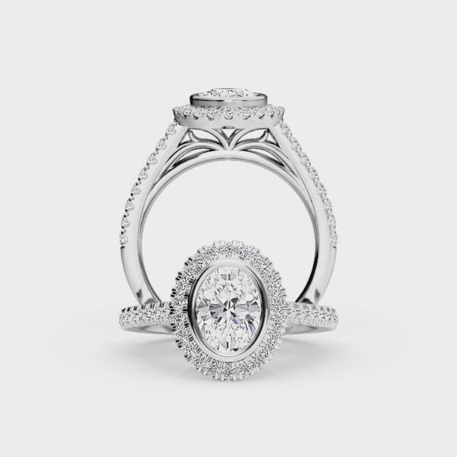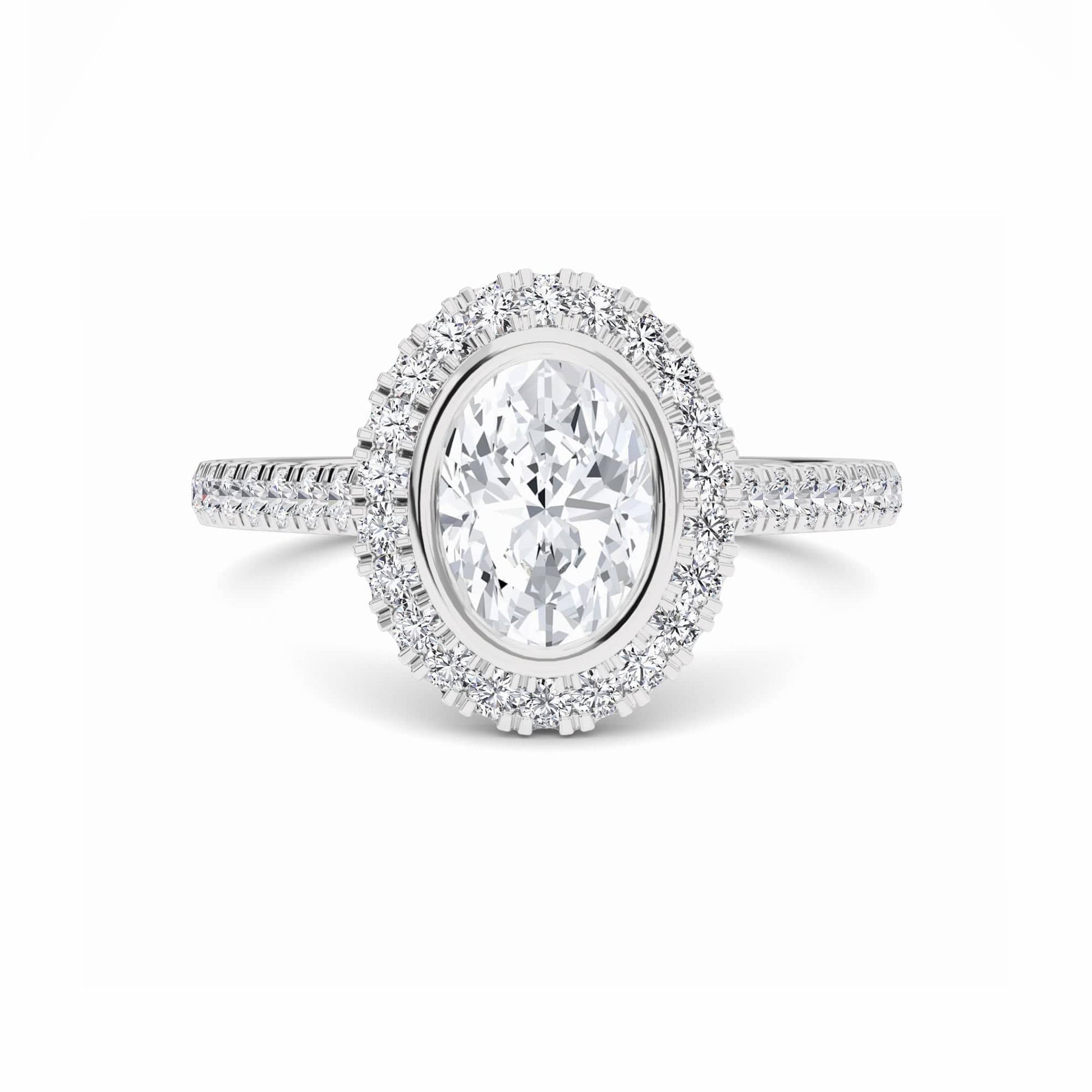 White Diamond Elegant Bezel-Set Pave Halo Engagement Ring - Vedika