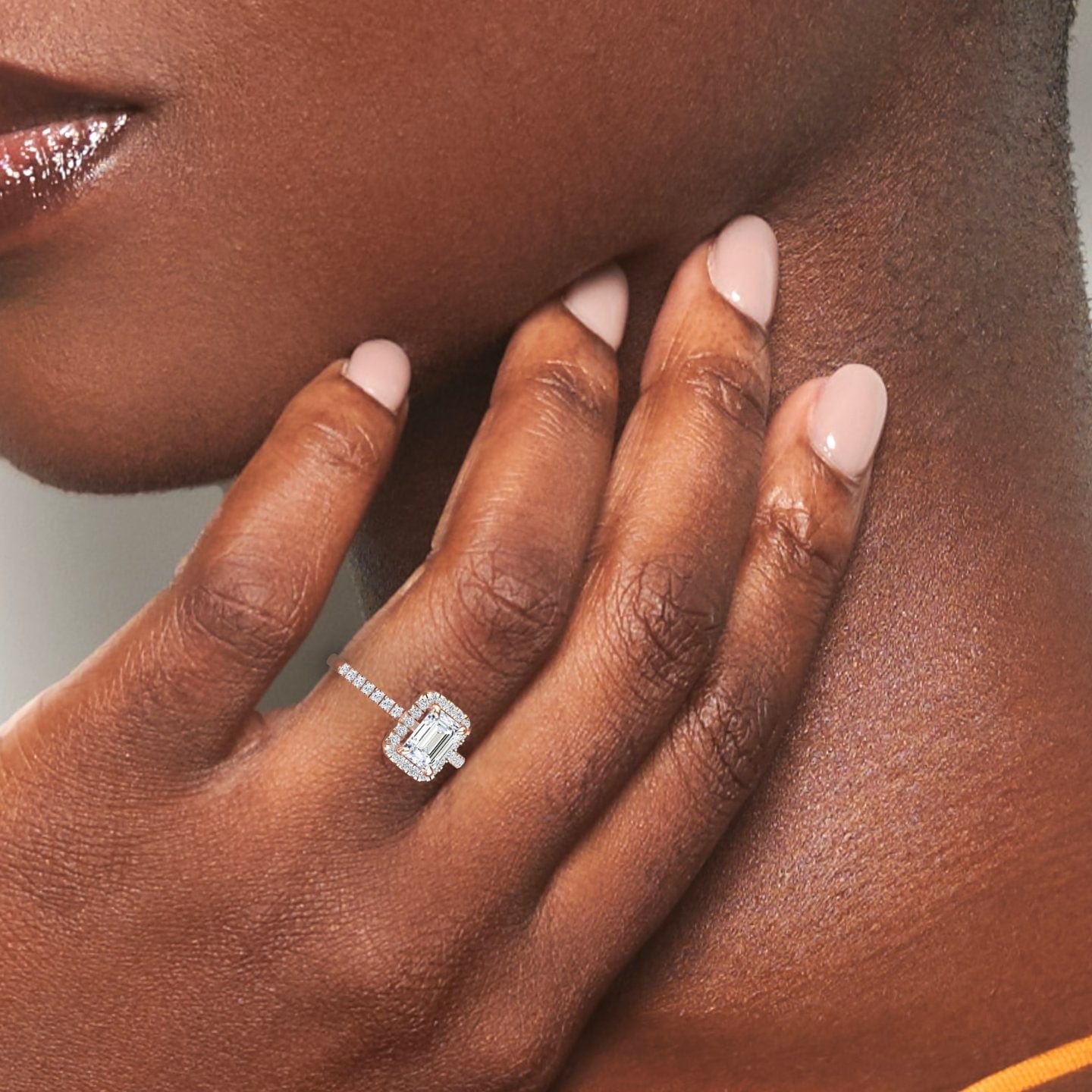 Qingling White Diamond Eternal Grace Halo Pave Accent Engagement Ring