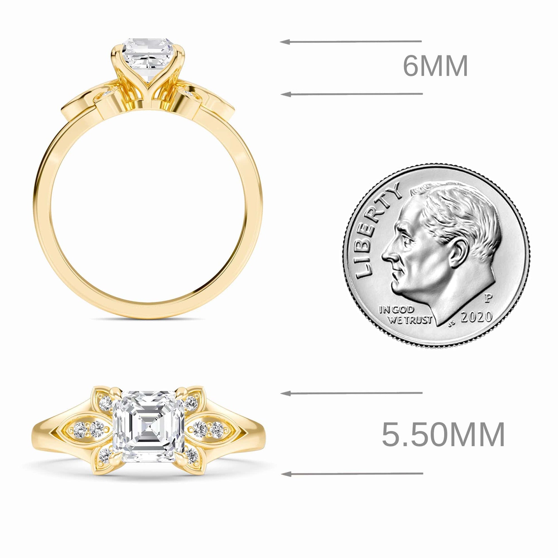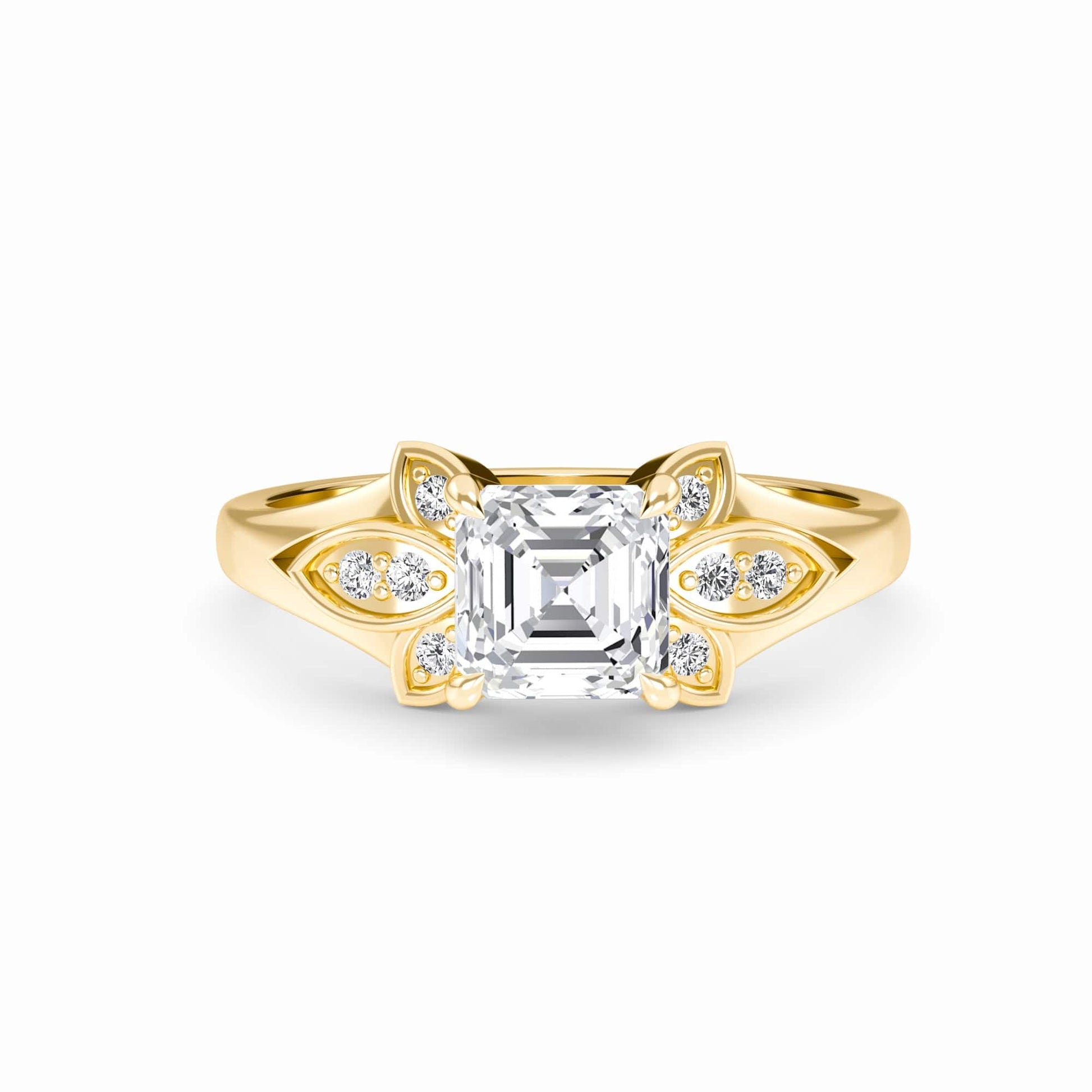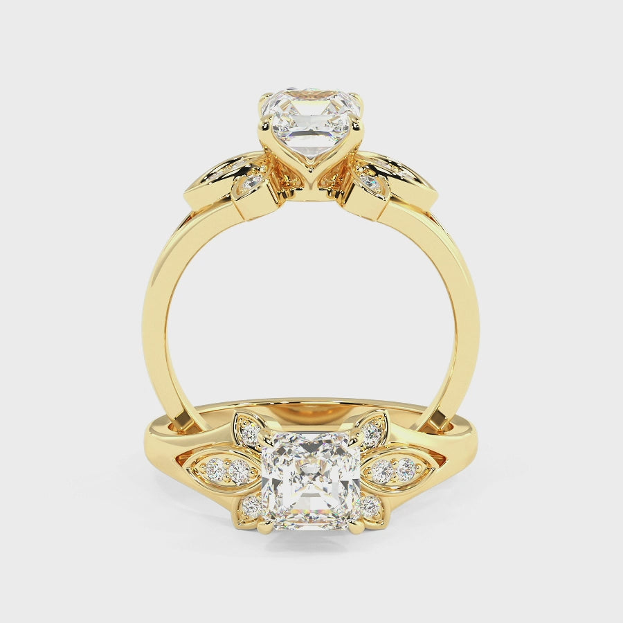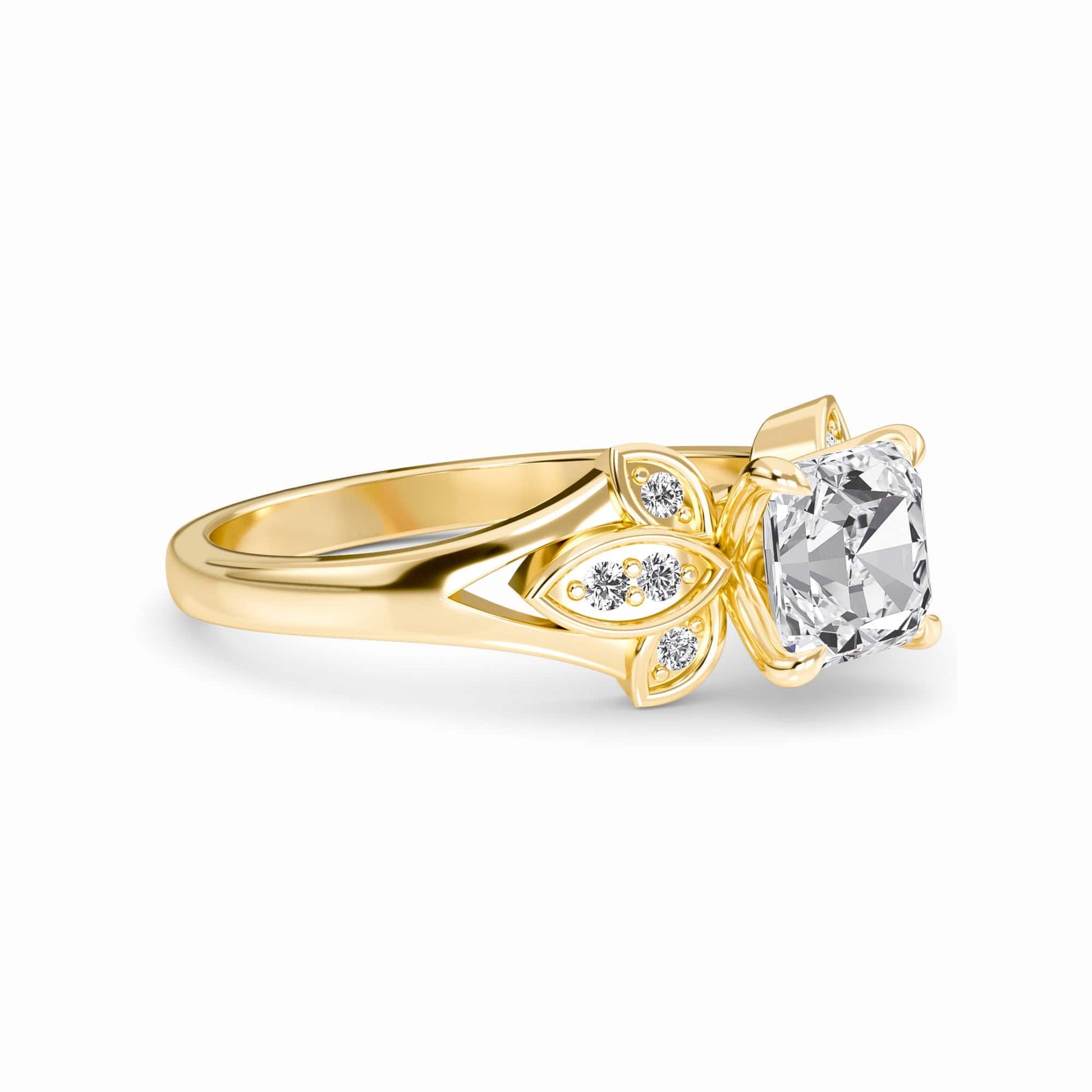 Inspired by nature’s elegance, the White Diamond Floral Accent Engagement Ring – Soledad showcases a diamond center stone with delicate floral side accents for a romantic, timeless look. Available in 18K White, Rose, Yellow, Blackened Gold, or Platinum, it’s a blooming symbol of everlasting love.