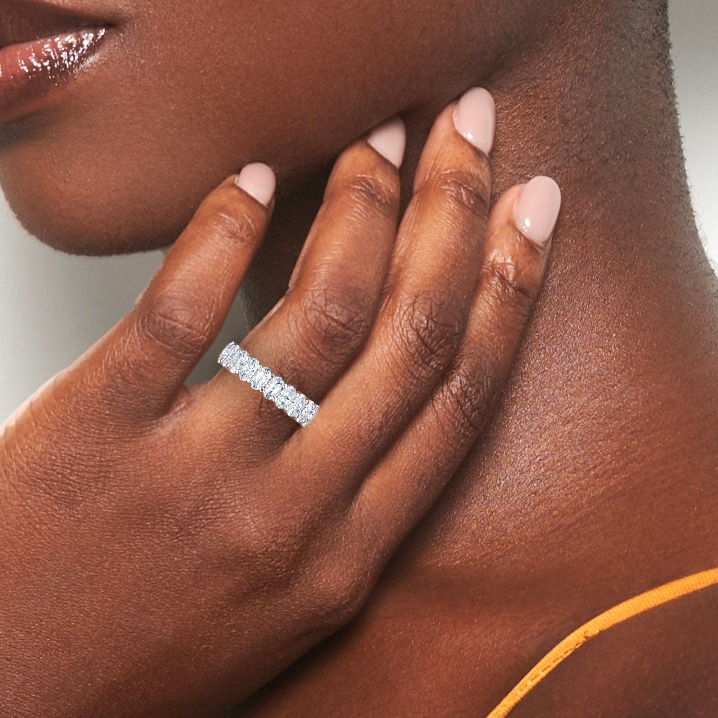 Elevate your elegance with the Diana white diamond eternity band, showcasing 21 oval-cut G-H color, SI1 clarity diamonds in a seamless circle of brilliance. Crafted in your choice of 14K White, Rose, Yellow, or Blackened Gold, this radiant ring is a timeless symbol of eternal love and luxury.
