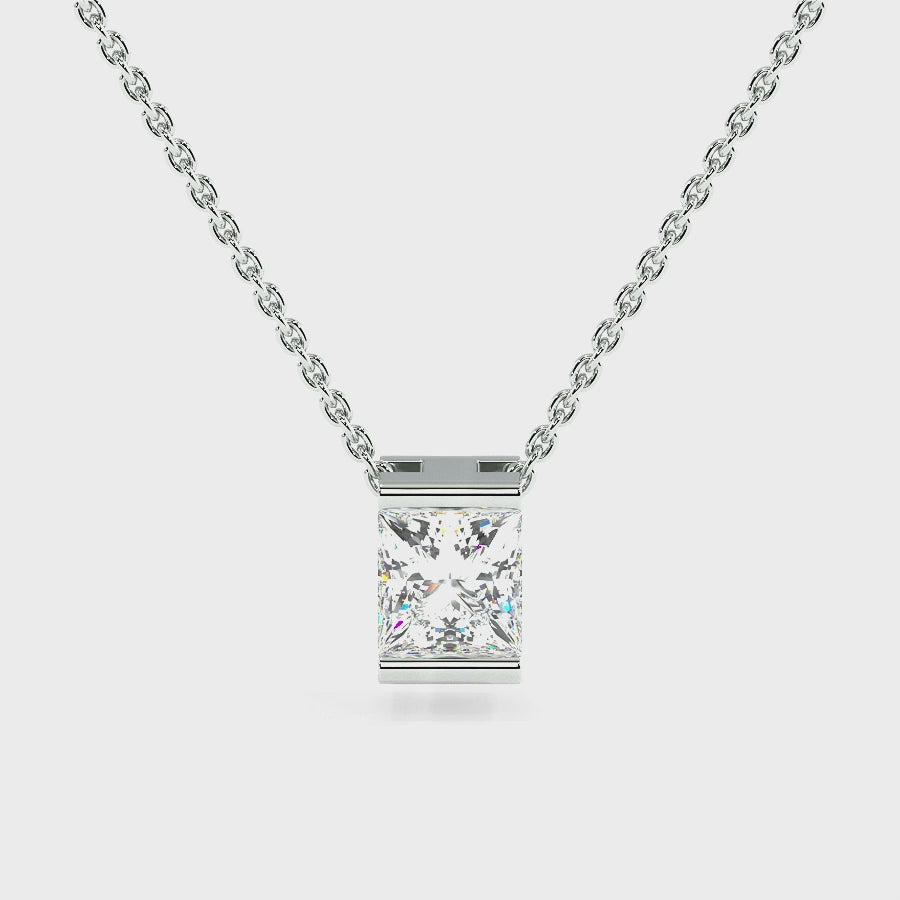 Home / All Diamond Necklace / White Diamond Half Bezel Solitaire Necklace - Jillian