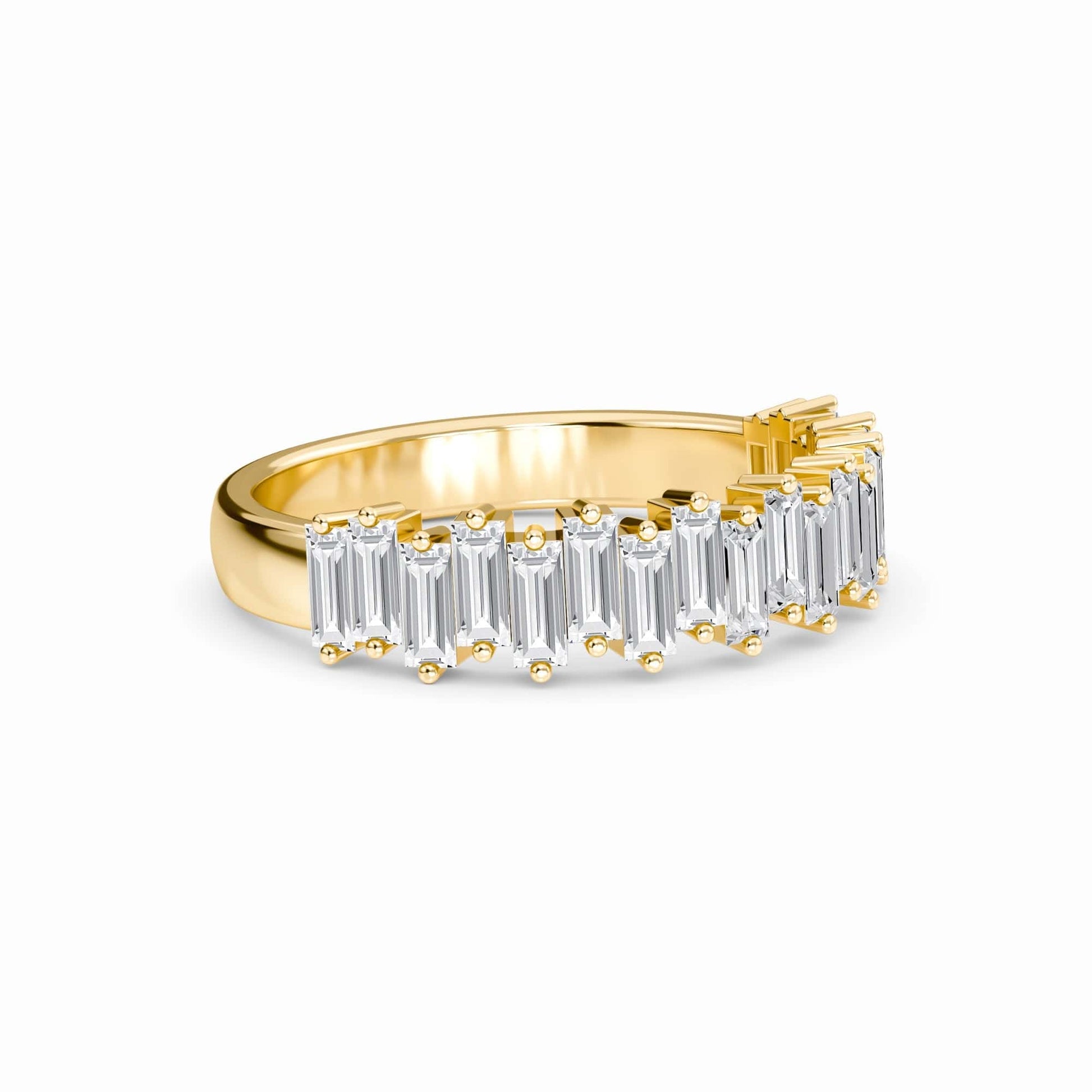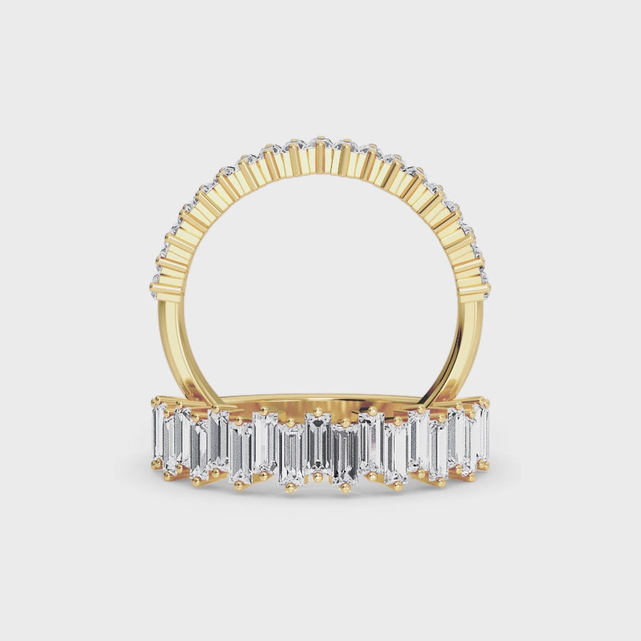 The White Diamond Half Eternity Band Ring - Aria is a timeless expression of elegance, featuring a row of dazzling baguette white diamonds in a sleek half-eternity design. Set in your choice of White Gold, Rose Gold, Yellow Gold, or Blackened Gold, this sophisticated band is perfect for weddings, anniversaries, or everyday luxury. A must-have for those who love classic brilliance with a modern touch.