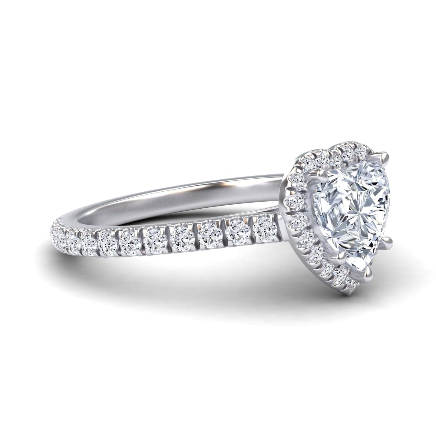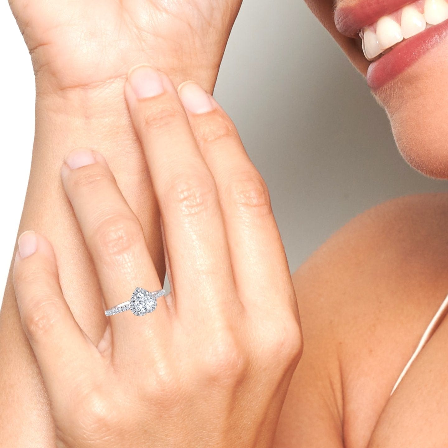White Diamond Halo Solitaire Pave Engagement Ring - Melanie