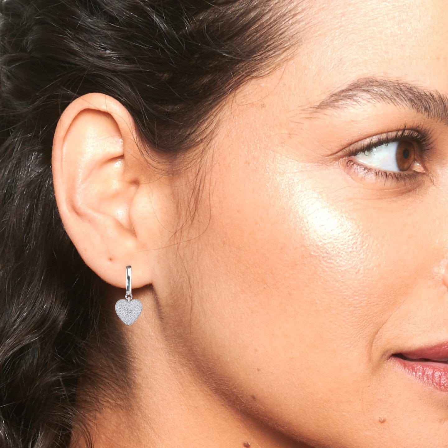 White Diamond Heart Hoop Earrings - Jinxi