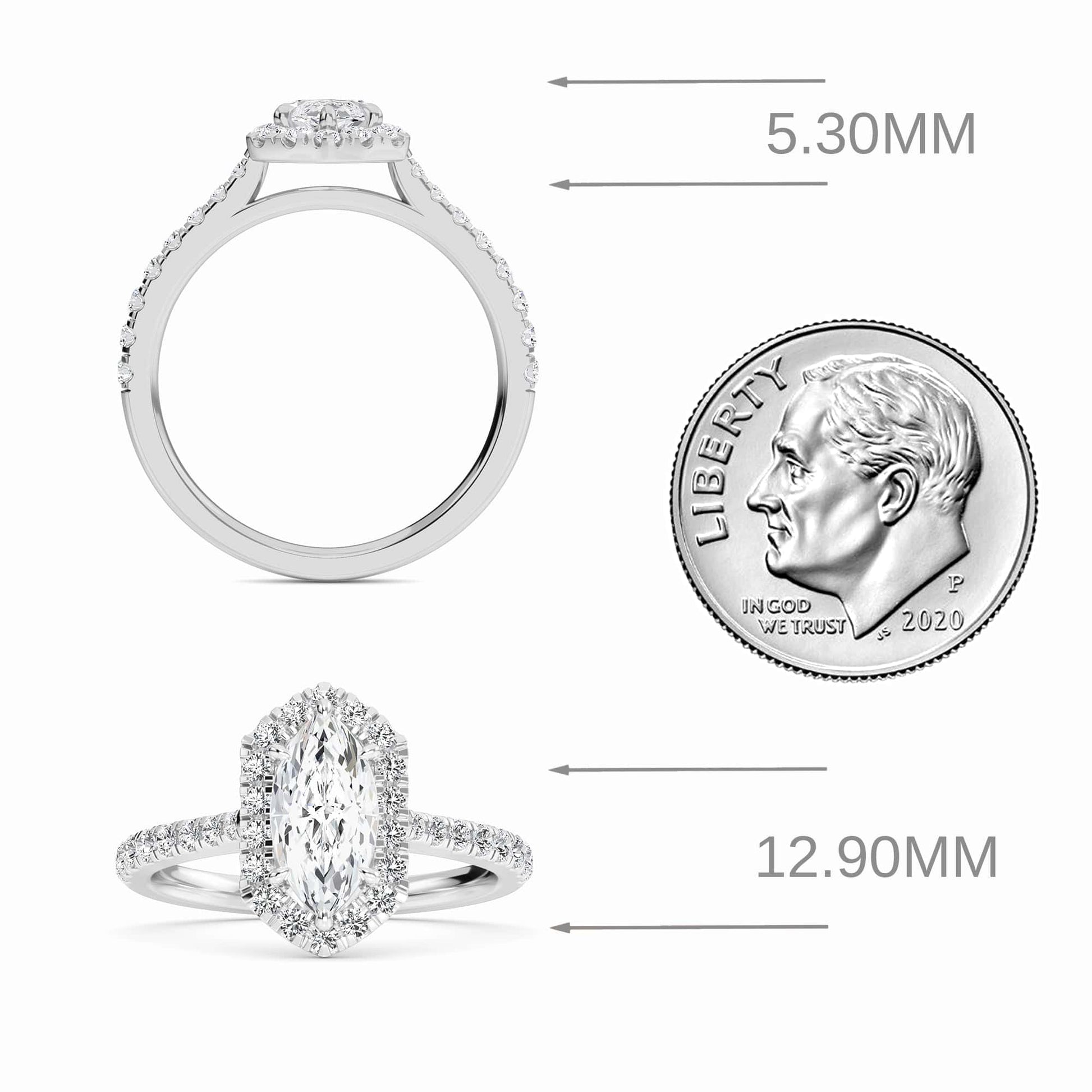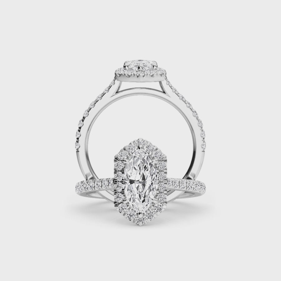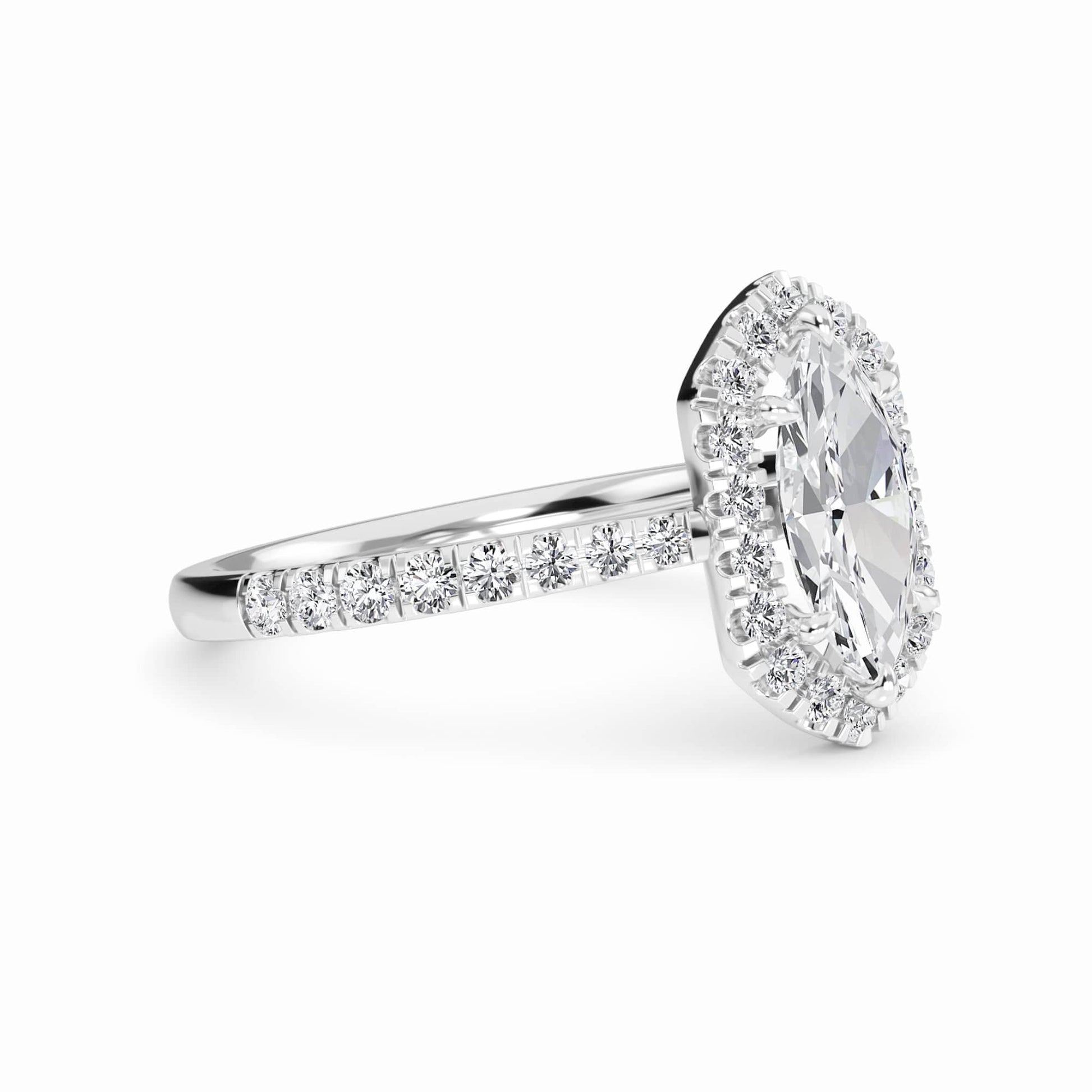 White Diamond Hexagon Halo Engagement Ring - Brighton
