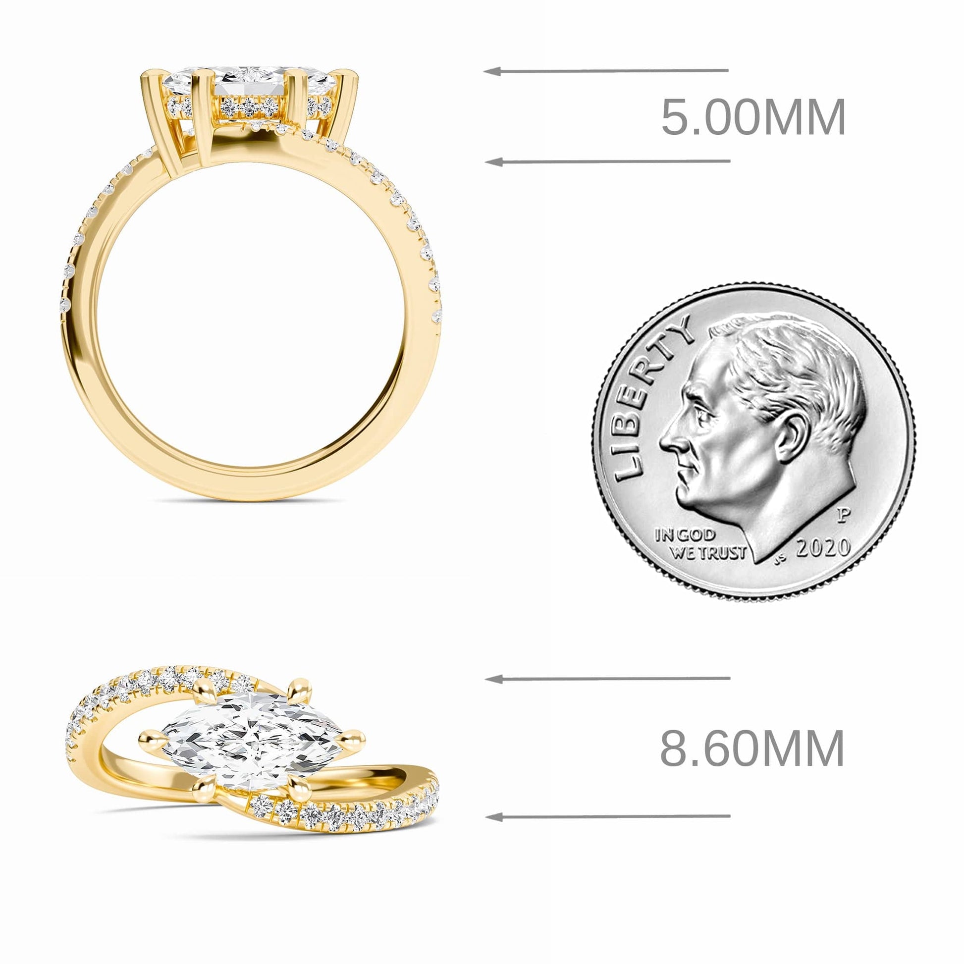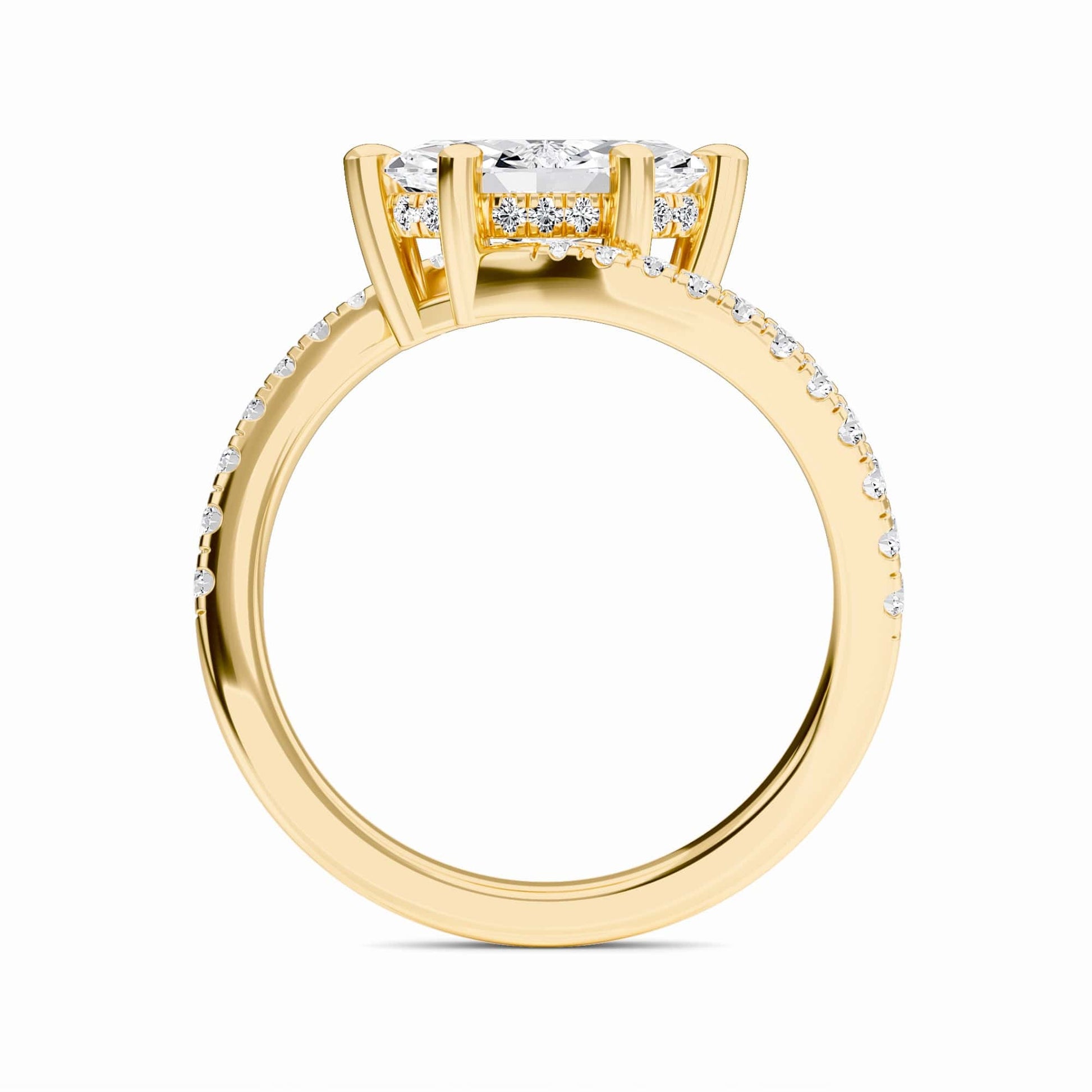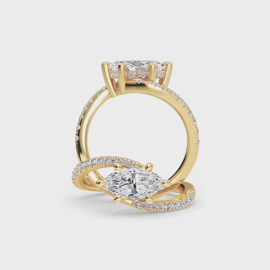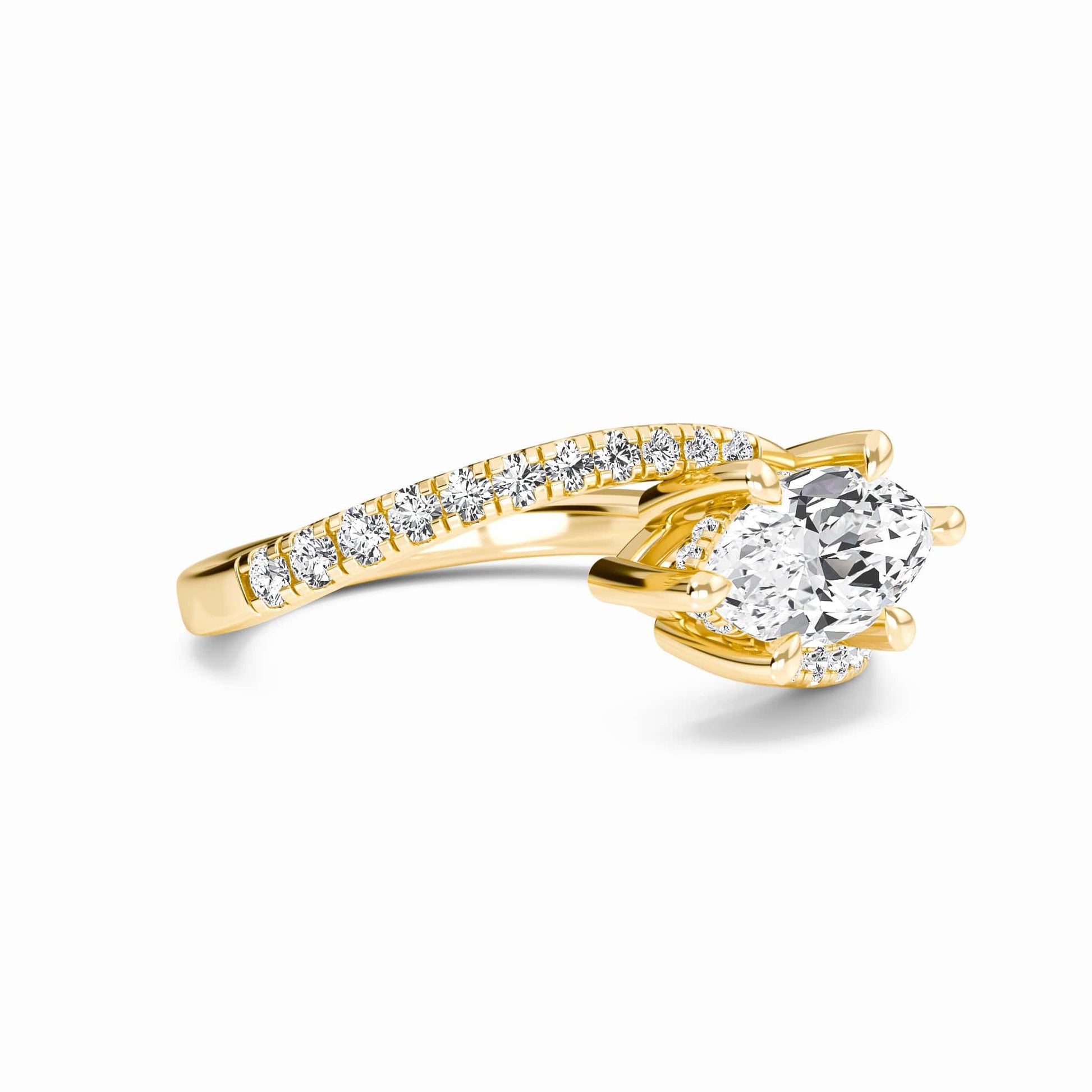 The Kashvi engagement ring showcases a brilliant white diamond accented with hidden round-cut side stones, creating a subtle yet captivating sparkle. Crafted in 18K White, Yellow, Rose, Blackened Gold, or Platinum, this ring offers a modern twist with a unique and elegant design.