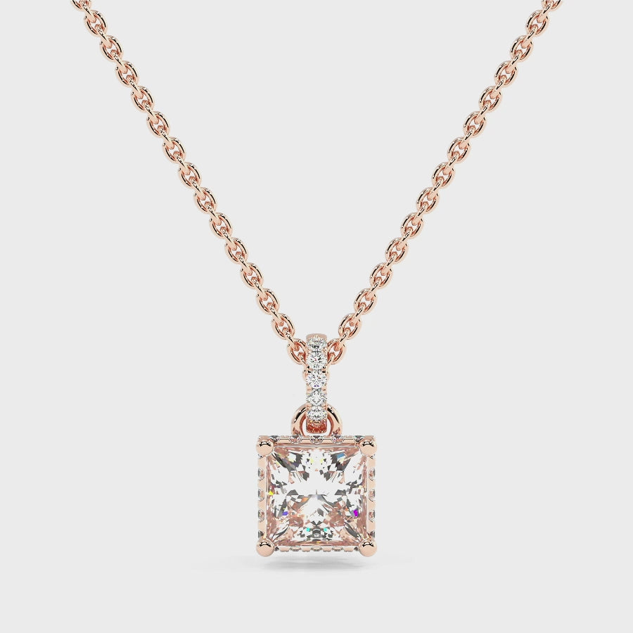 Home / All Diamond Necklace / White Diamond Hidden Halo Drop Necklace - Miranda