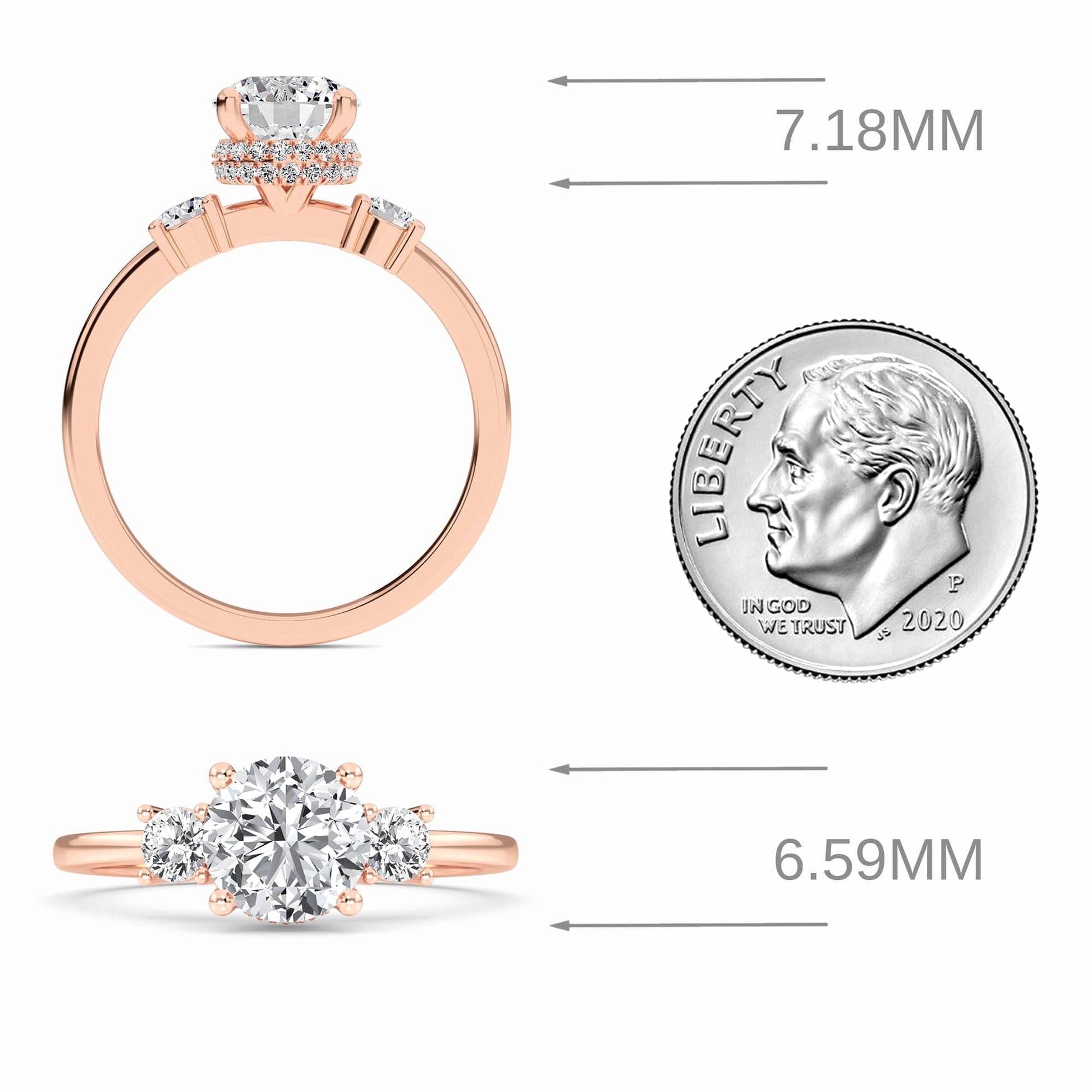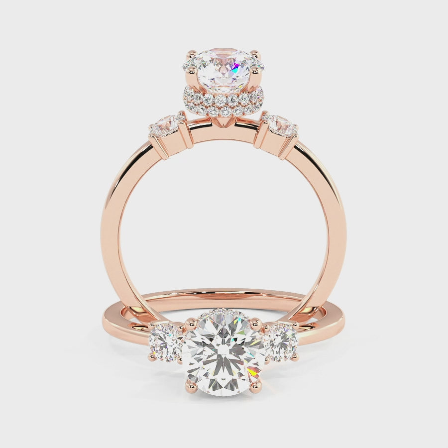 Ridhi White Diamond Hidden Halo Three Stone Engagement Ring
