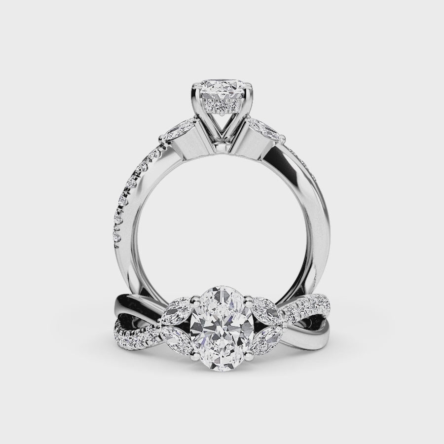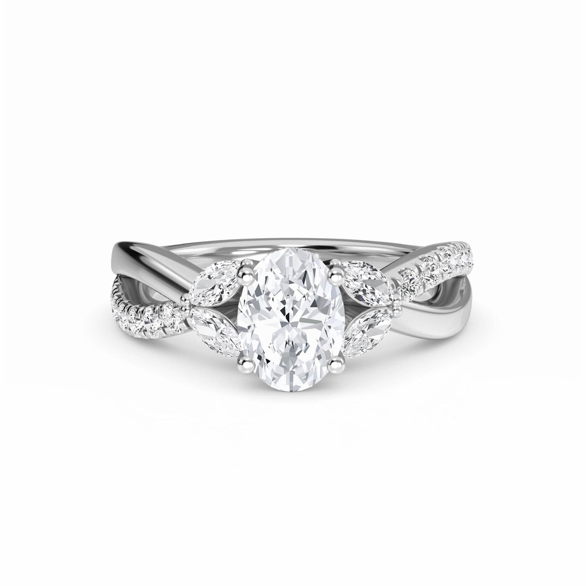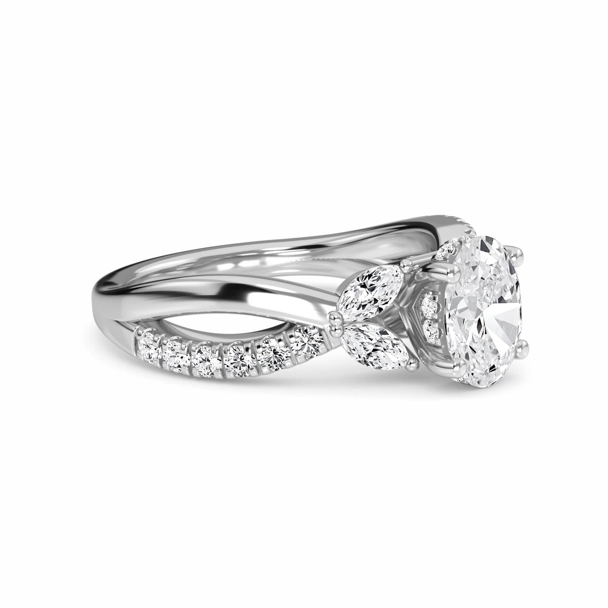 White Diamond Leaf Motif Twisted Engagement Ring - Skylar