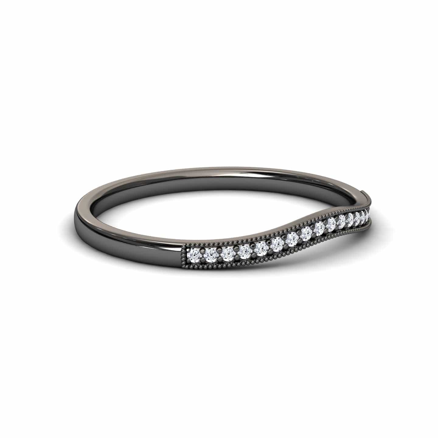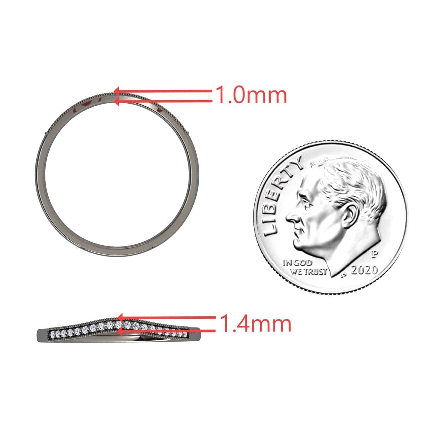 White Diamond Milgrain Curved Wedding Band - Xiumei