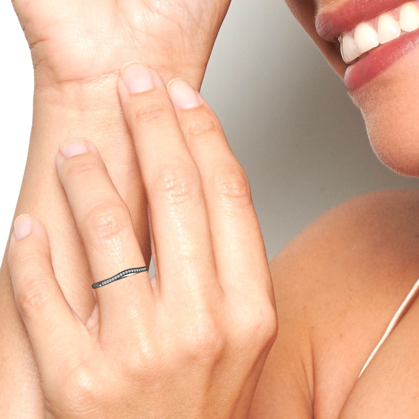 Home / Jewelry / Rings / Women's Wedding Ring / White Diamond Milgrain Curved Wedding Band - Xiumei