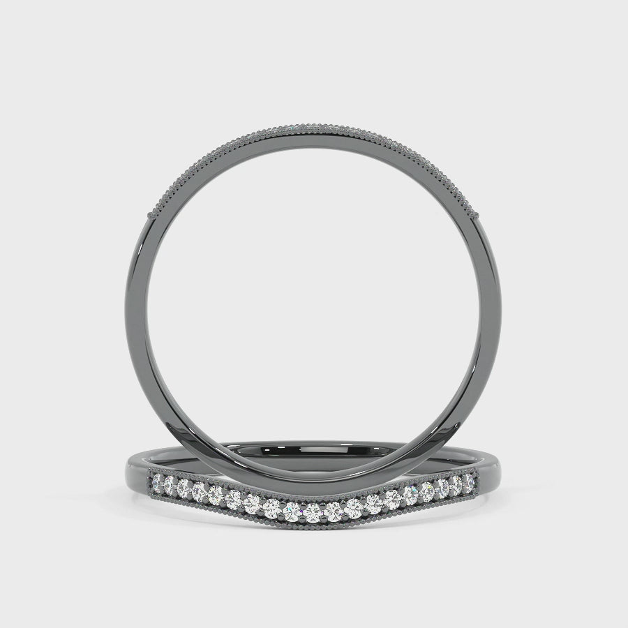 Xiumei White Diamond Milgrain Curved Wedding Band