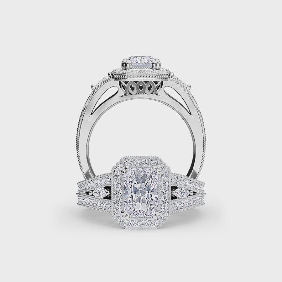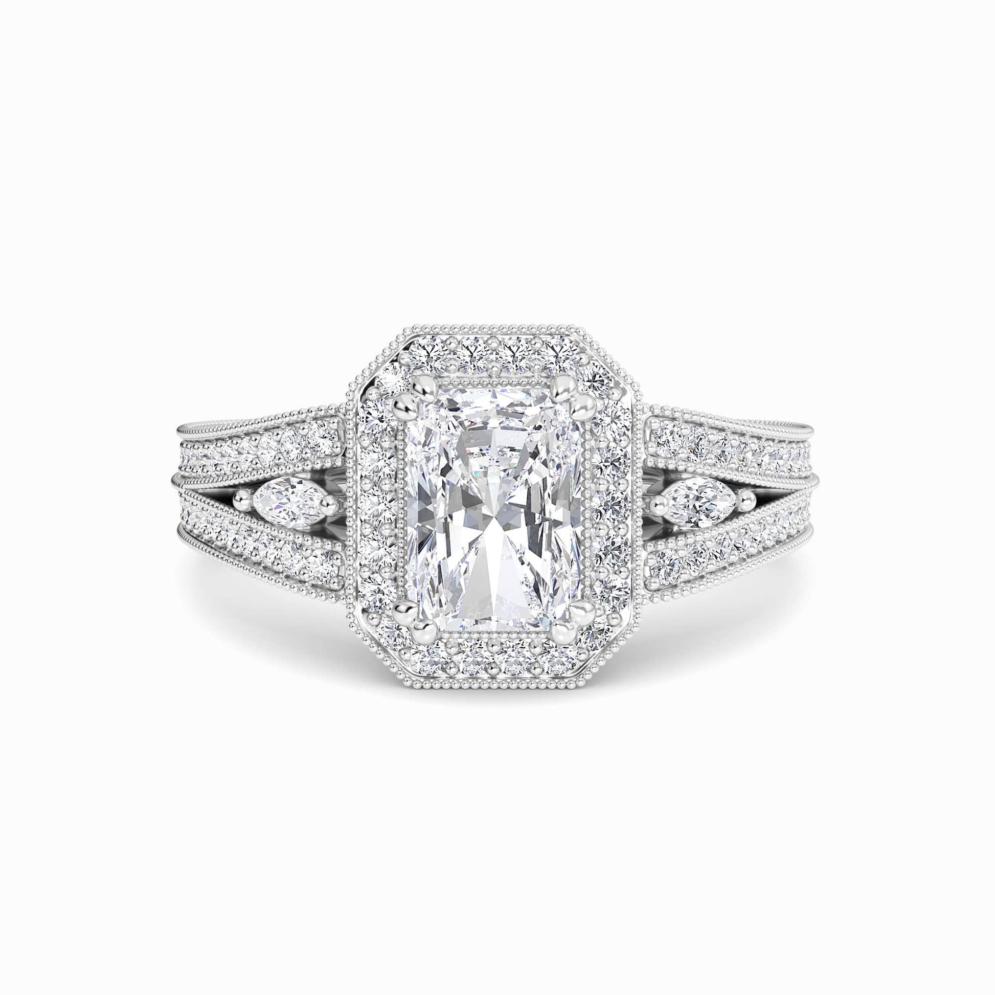 White Diamond Milgrain Halo Engagement Ring - Palmer