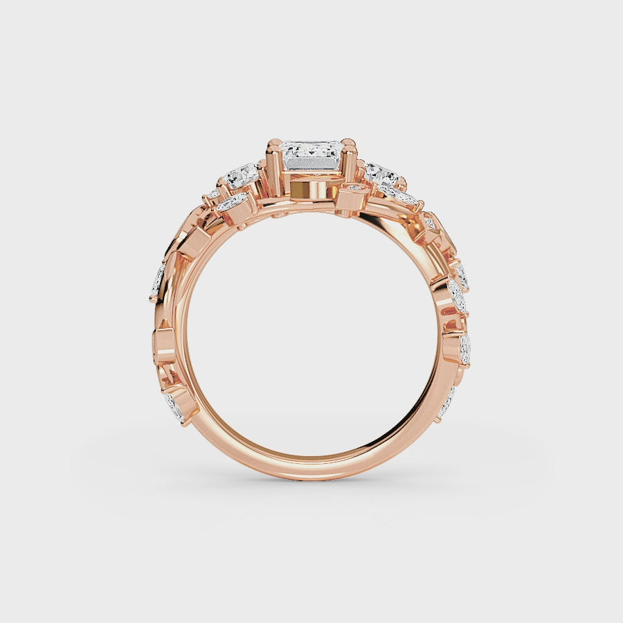 Adelyn White Diamond Nature-Inspired Three-Stone Engagement Ring